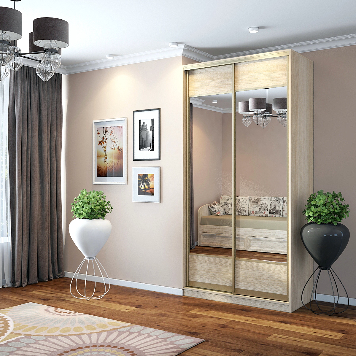 Шкаф-купе Старт 2-дверный с зеркалами и вставки верх, низ-ЛДСП 1200 (высота 2400, глубина 600) доступен к заказу в различных вариантах исполнения цвета фасада и корпуса, среди которых каждый сможет найти подходящий своему интерьеру.