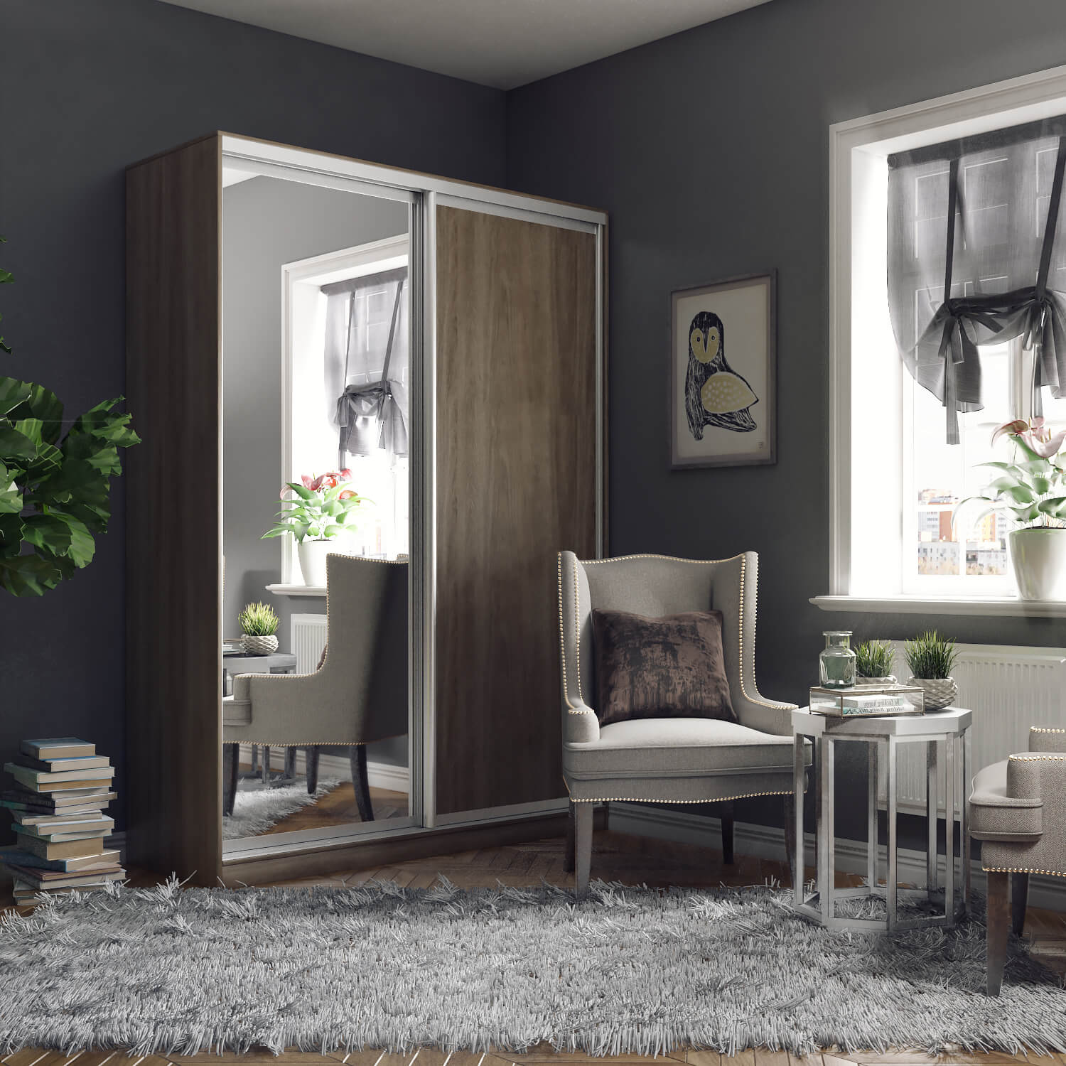 Шкаф-купе Старт 2-дверный с зеркалом и ЛДСП 1500 (высота 2400, глубина 450) доступен к заказу в различных вариантах исполнения цвета фасада и корпуса, среди которых каждый сможет найти подходящий своему интерьеру.