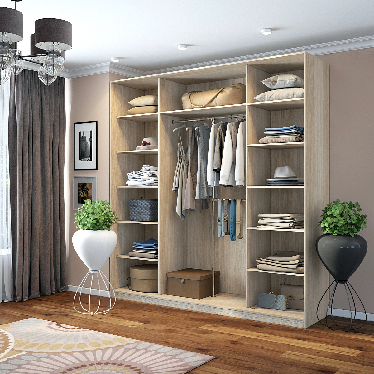 Внутри есть вместительные полки для складирования сложенных стопок, антресоли и секция для размещения вещей на плечиках. Такое внутреннее наполнение привычно обывателю, оно хорошо зарекомендовало себя, соответствует требованиям ГОСТа. Вам будет удобно хранить одежду внутри.