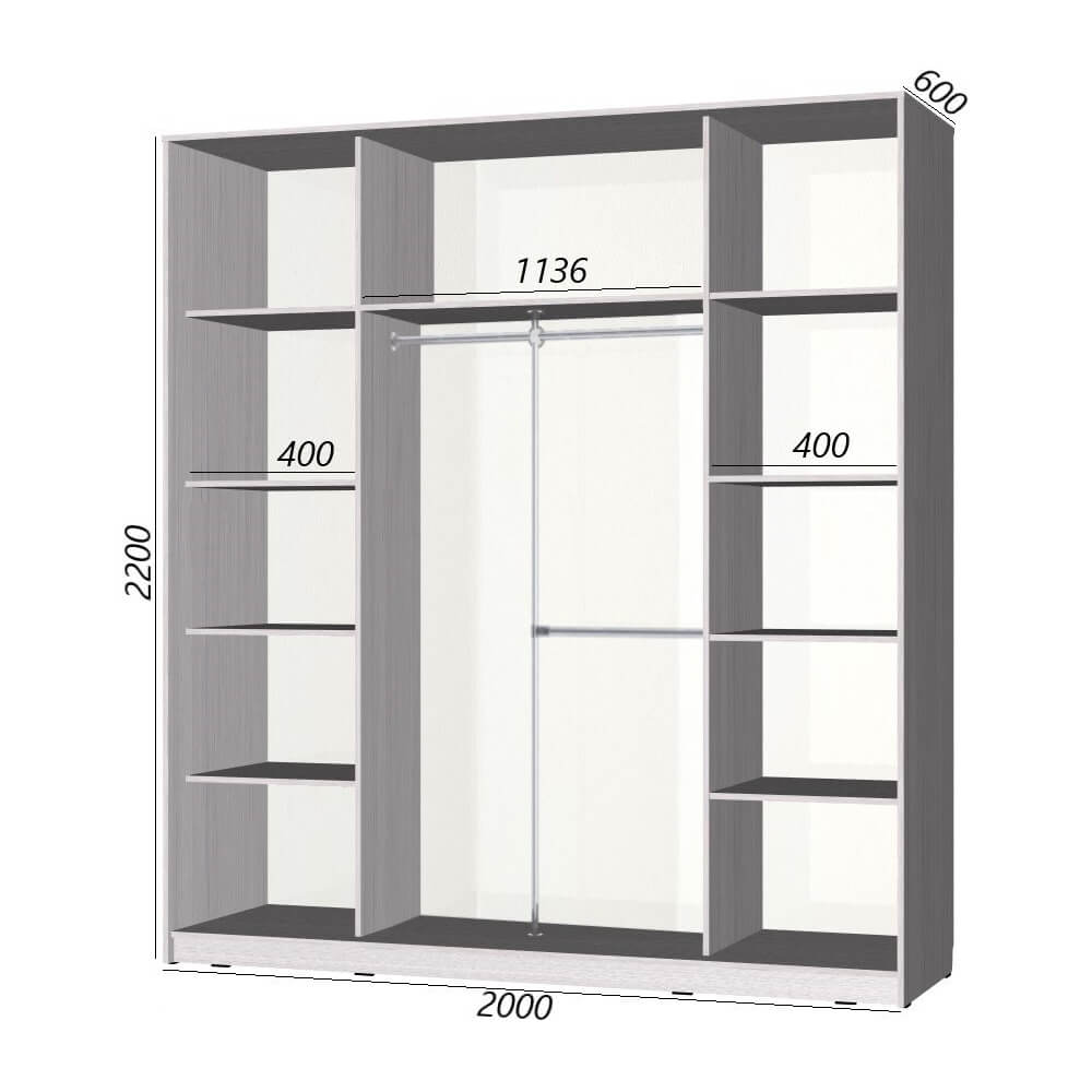 Шкаф-купе Старт 3-дверный без зеркала со вставками 2000 (высота 2200, глубина 600), материал корпуса - ЛДСП. Производитель - VM-mebel.