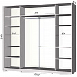 Длина шкафа почти 2,6 метра, благодаря этому отделение для хранения одежды на вешалках имеет 3 секции. В нем установлены штанги, поэтому Вам больше не нужно долго искать нужную вещь.