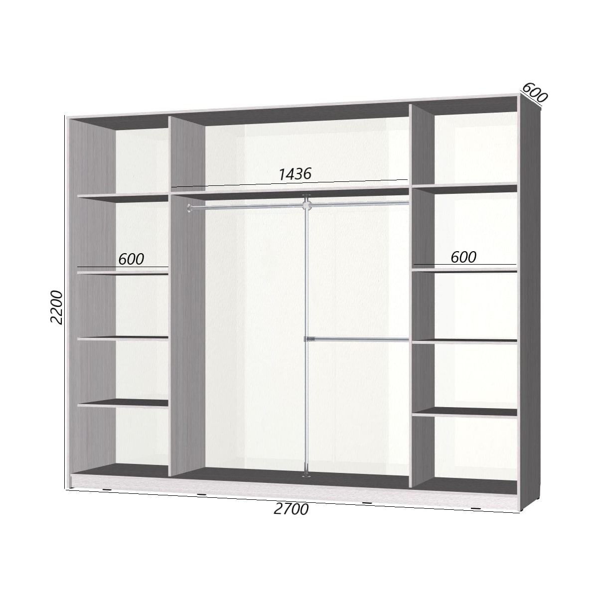 Шкаф-купе серии «Старт» 2700 - это компактный по ширине, но очень вместительный гардероб для целой семьи. Сюда вы сможете поместить все свои вещи, включая отложенное для хранения до следующего сезона.