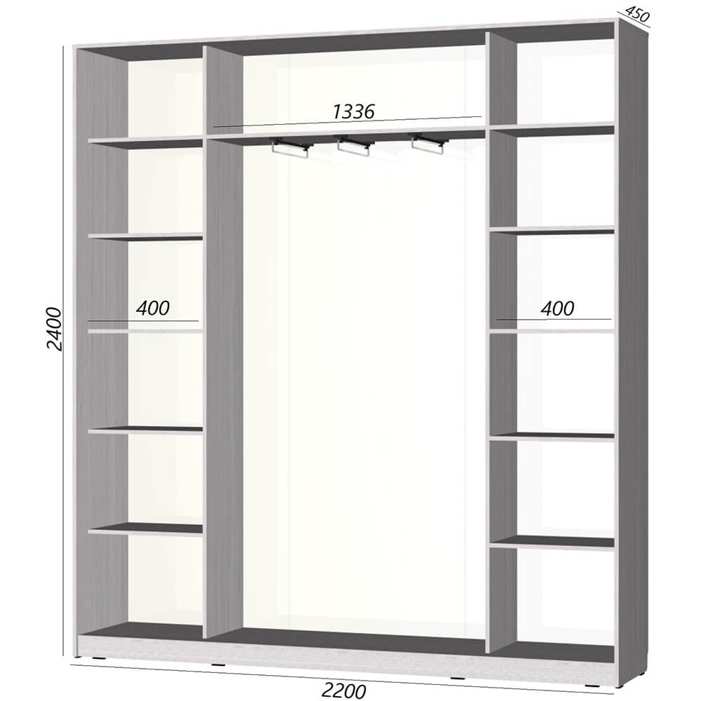 Шкаф-купе Старт 3-дверный МДФ без зеркала 2200 (высота 2400, глубина 450) доступен к заказу в различных вариантах исполнения цвета фасада и корпуса, среди которых каждый сможет найти подходящий своему интерьеру.