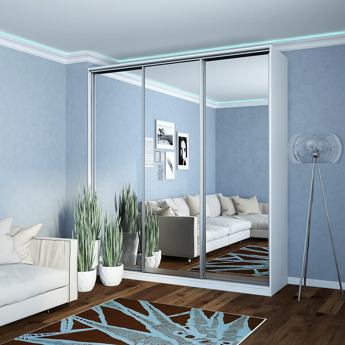 Шкаф-купе Старт 3-дверный с 3-мя зеркалами 2100 (высота 2400, глубина 450) доступен к заказу в различных вариантах исполнения цвета фасада и корпуса, среди которых каждый сможет найти подходящий своему интерьеру.