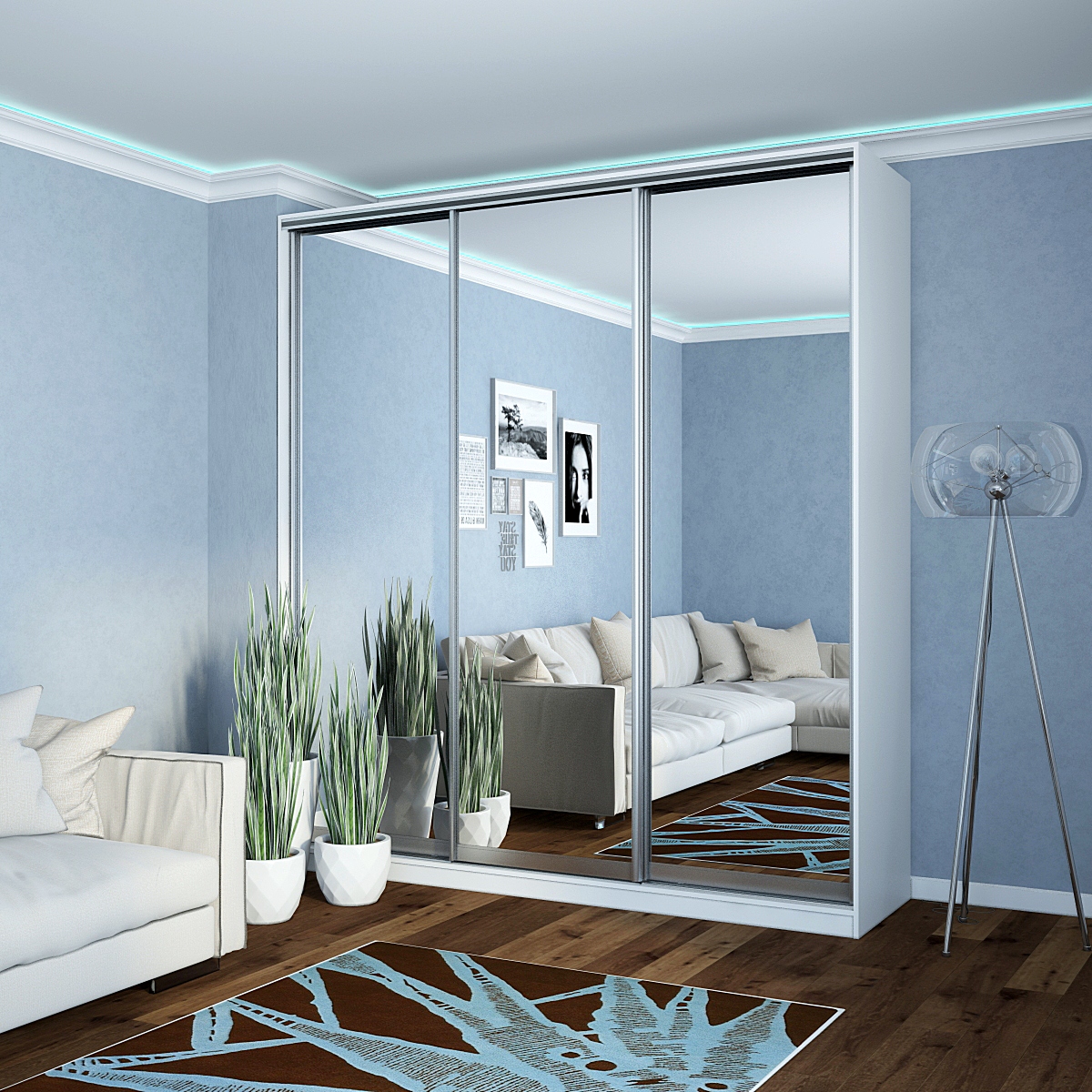 Шкаф-купе Старт 3-дверный с 3-мя зеркалами 2200 (высота 2400, глубина 450) доступен к заказу в различных вариантах исполнения цвета фасада и корпуса, среди которых каждый сможет найти подходящий своему интерьеру.