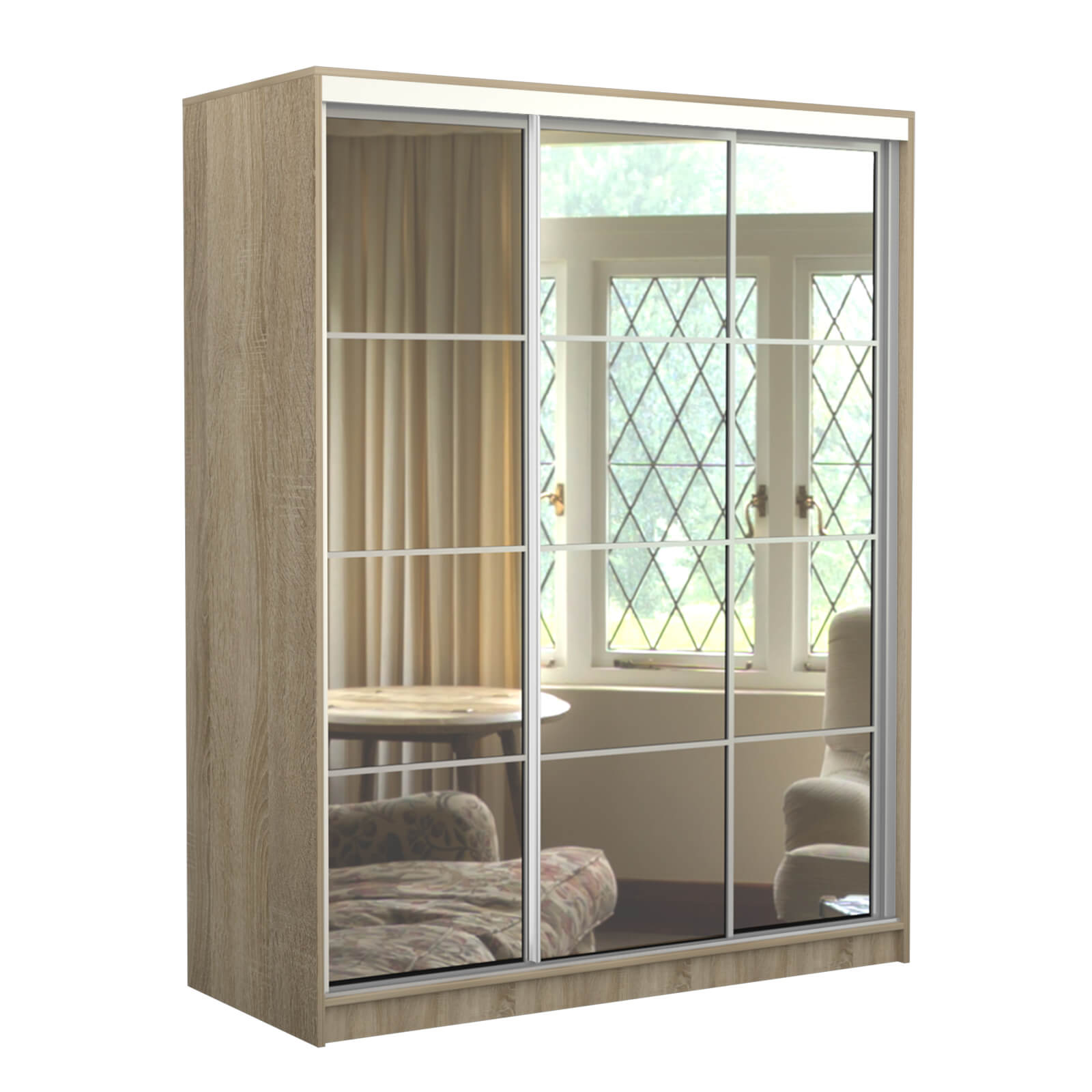Шкаф-купе Старт 3-дверный с 3-мя зеркалами со вставками 2000 (высота 2400, глубина 600), материал корпуса - ЛДСП. Производитель - VM-mebel.