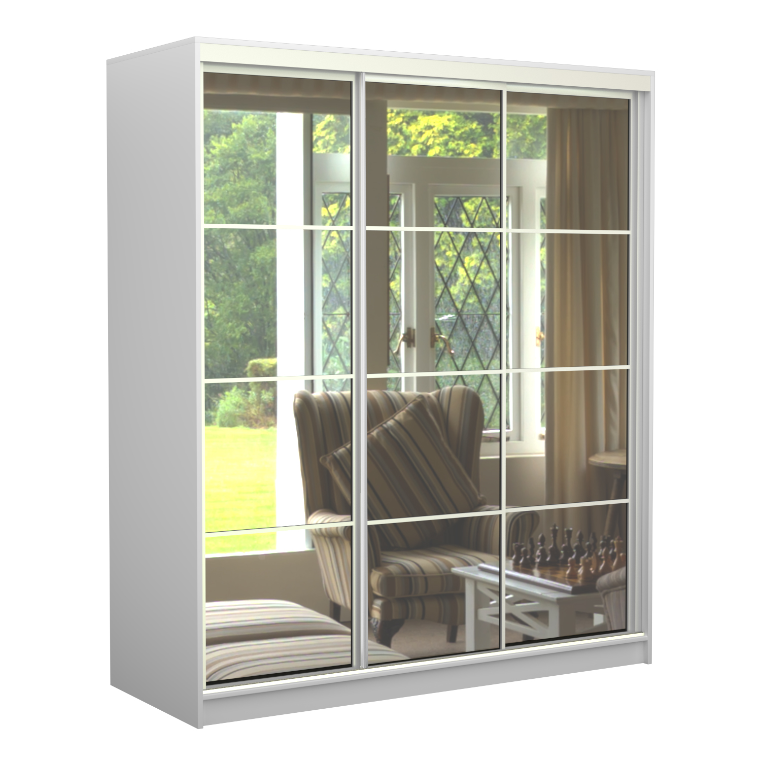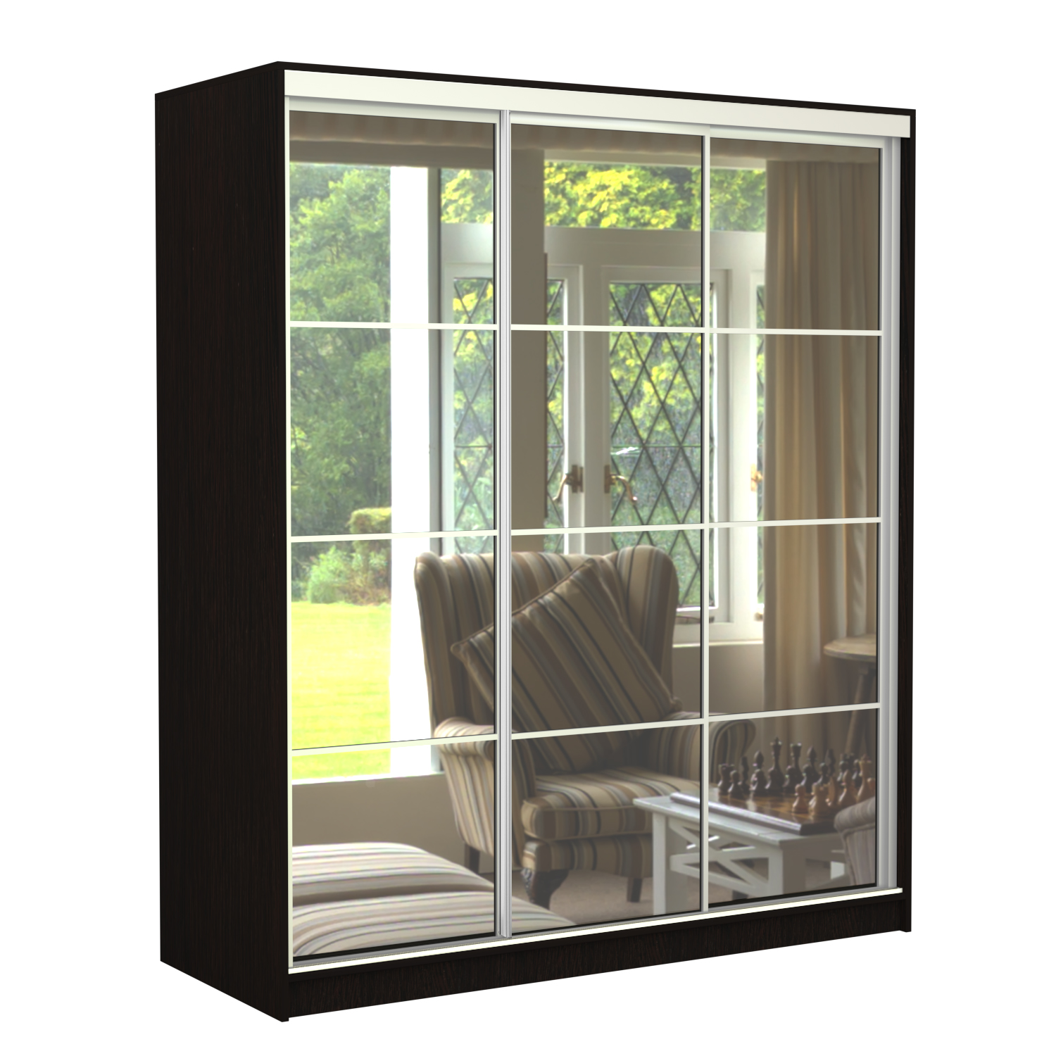 Шкаф-купе Старт 3-дверный с 3-мя зеркалами со вставками 2300 (высота 2400, глубина 600), материал корпуса - ЛДСП. Производитель - VM-mebel.