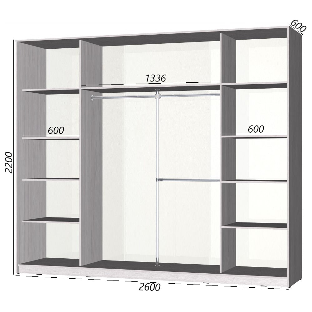 Шкаф-купе Старт 3-дверный с 3-мя зеркалами со вставками 2600 (высота 2200, глубина 600) доступен к заказу в различных вариантах исполнения цвета фасада и корпуса, среди которых каждый сможет найти подходящий своему интерьеру.