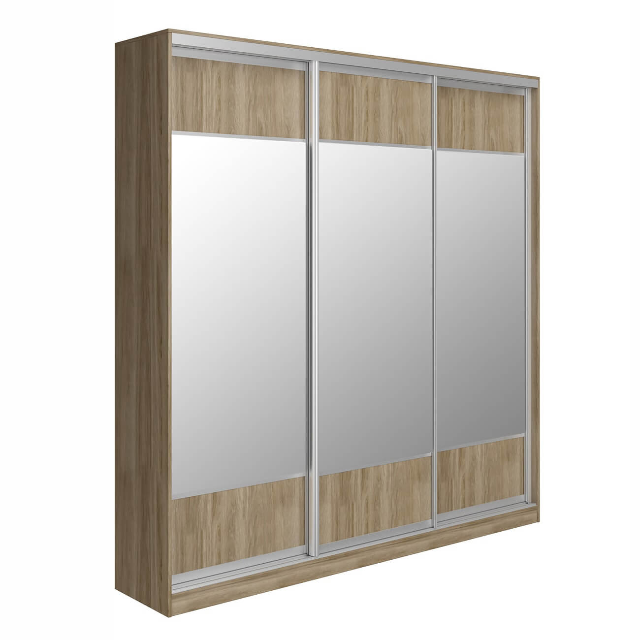 Шкаф-купе Старт 3-дверный с зеркалами и вставки верх, низ-ЛДСП 2100 (высота 2400, глубина 450) доступен к заказу в различных вариантах исполнения цвета фасада и корпуса, среди которых каждый сможет найти подходящий своему интерьеру.