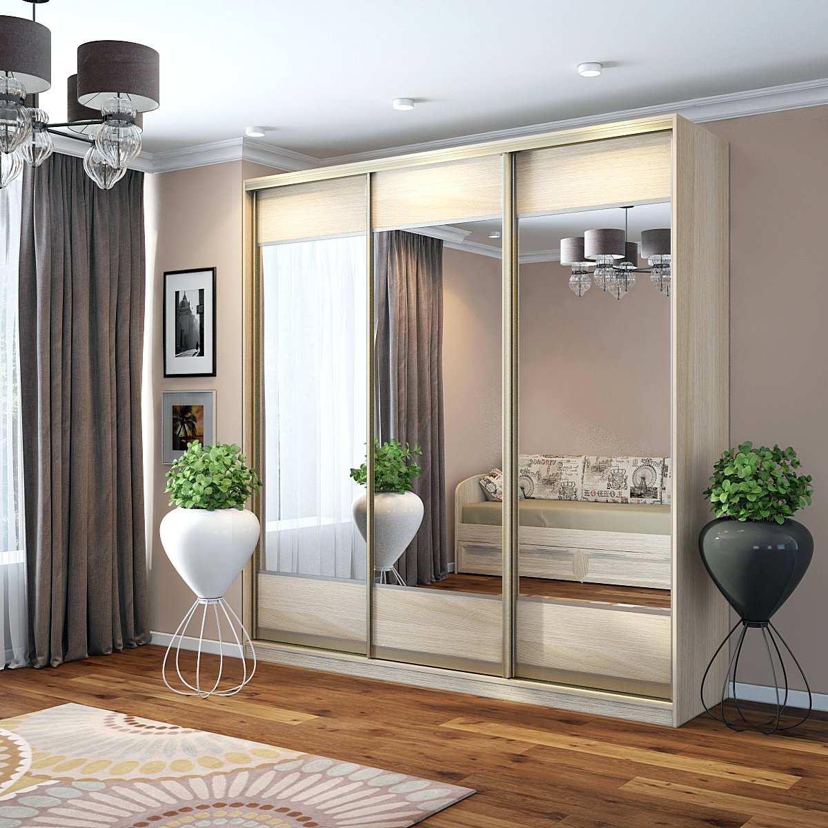 Шкаф-купе Старт 3-дверный с зеркалами и вставки верх, низ-ЛДСП 2300 (высота 2400, глубина 450) доступен к заказу в различных вариантах исполнения цвета фасада и корпуса, среди которых каждый сможет найти подходящий своему интерьеру.