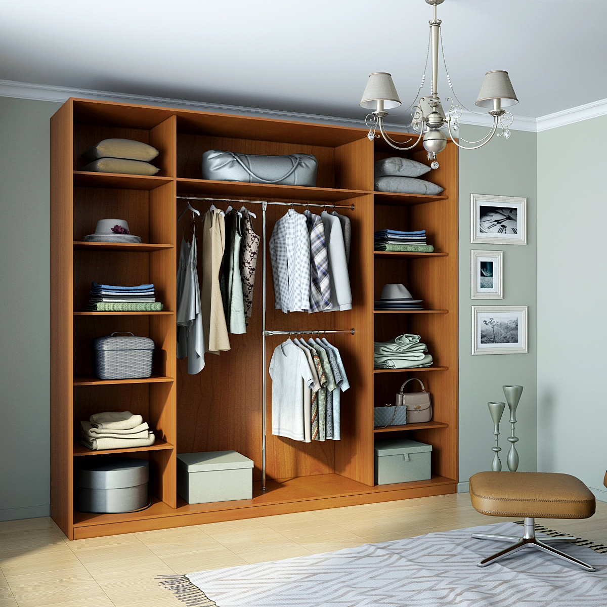 Длина шкафа почти 2,6 метра, благодаря этому отделение для хранения одежды на вешалках имеет 3 секции. В нем установлены штанги, поэтому Вам больше не нужно долго искать нужную вещь.