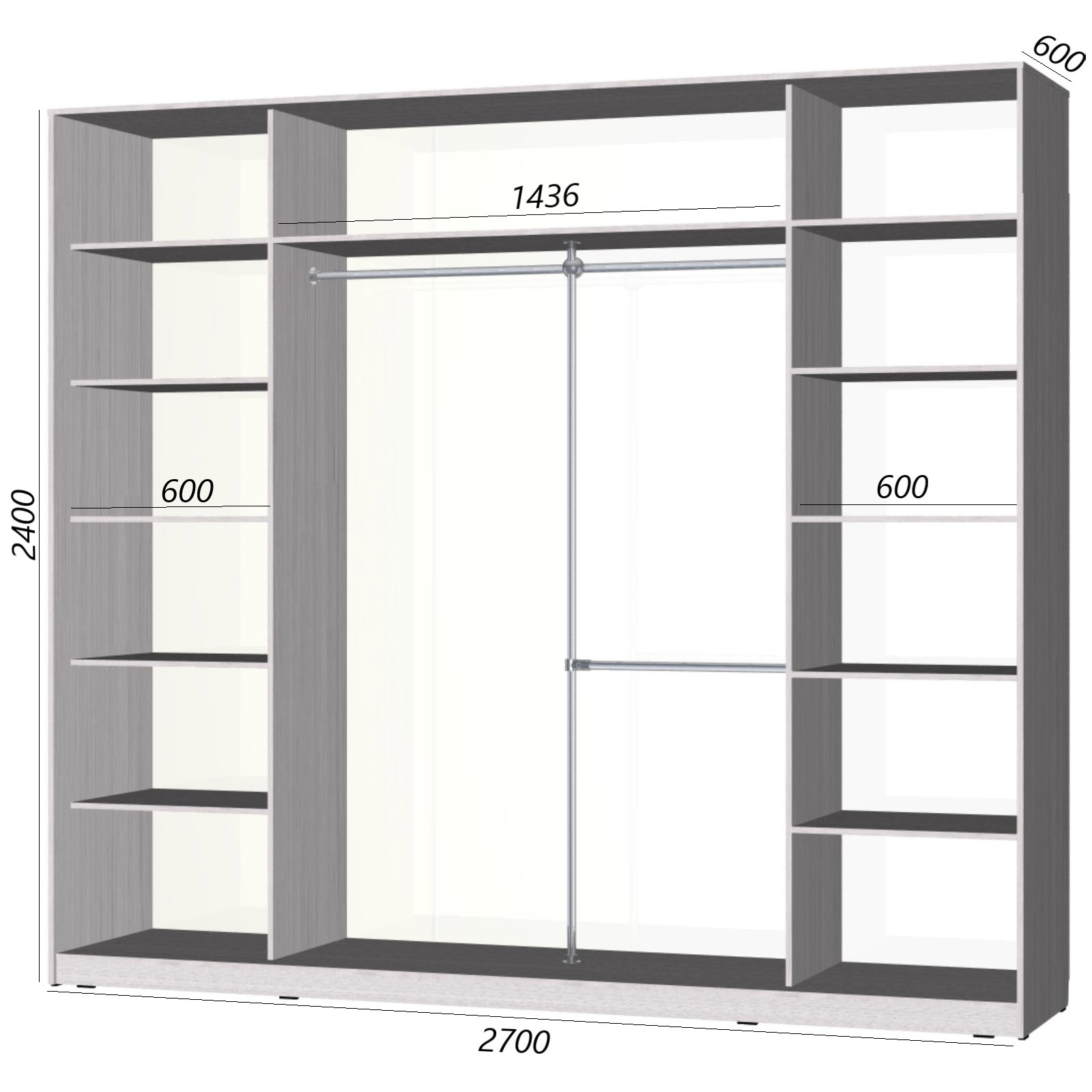 Шкаф-купе серии «Старт» 2700 - это очень вместительный гардероб для целой семьи. Сюда Вы сможете поместить все свои вещи, включая отложенное для хранения до следующего сезона.