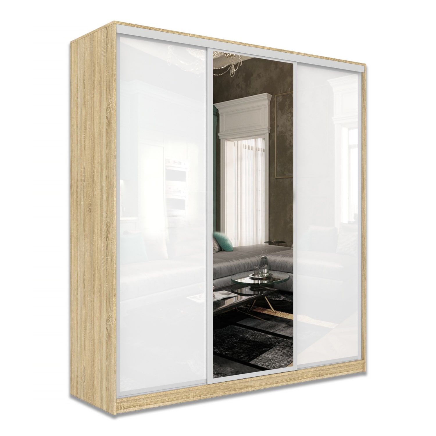 Шкаф-купе Старт 3-дверный с зеркалом и 2 МДФ 2000 (высота 2400, глубина 600), материал корпуса - ЛДСП. Производитель - VM-mebel.