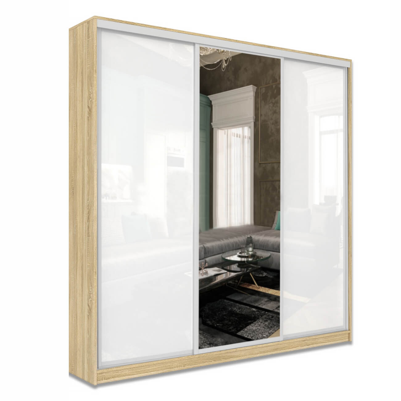 Шкаф-купе Старт 3-дверный с зеркалом и 2 МДФ 2200 (высота 2400, глубина 450), материал корпуса - ЛДСП. Производитель - VM-mebel.