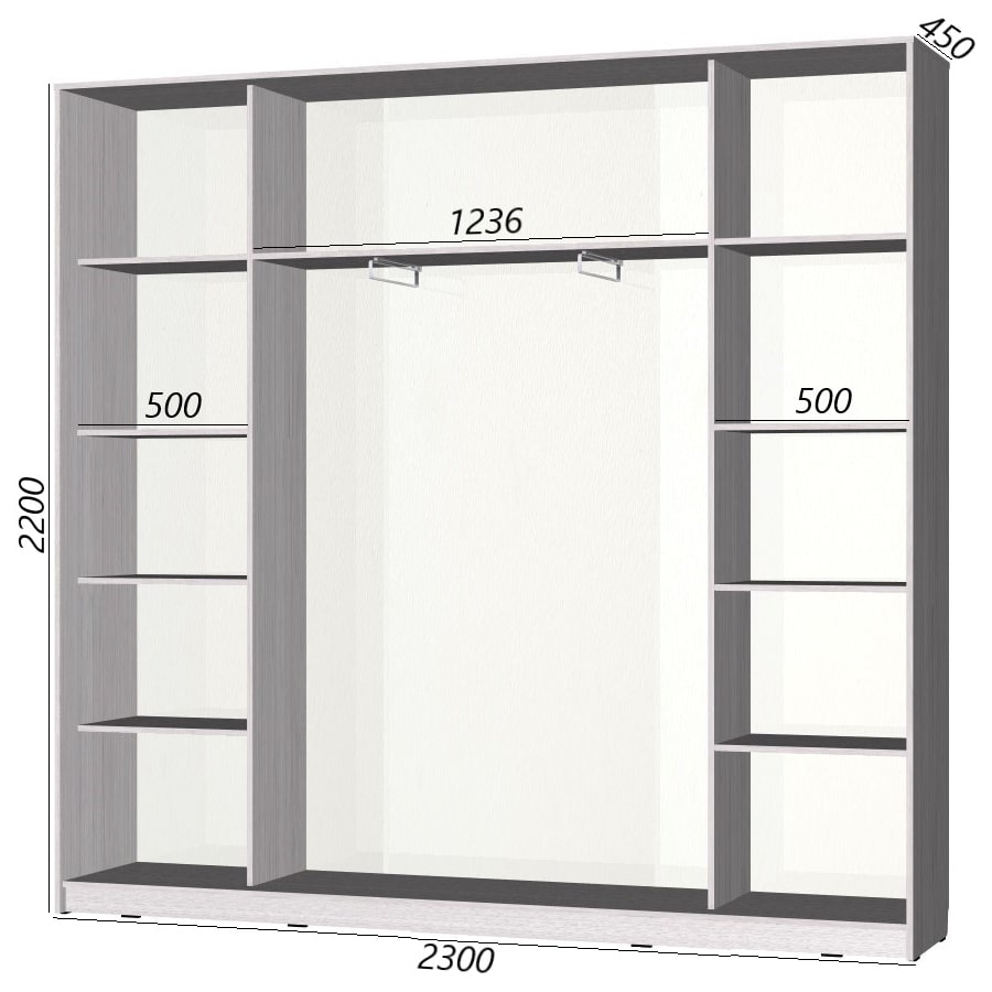 Трехдверный современный шкаф-купе серии «Старт» МДФ 2300 украсит собой любое пространство. Он по-настоящему вместительный и отлично спроектирован. Здесь хватит места для хранения одежды целой семьи.