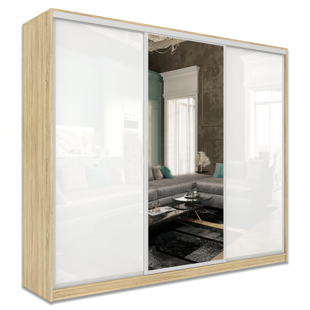 Шкаф-купе Старт 3-дверный с зеркалом и 2 МДФ 2500 (высота 2200, глубина 450), материал корпуса - ЛДСП. Производитель - VM-mebel.