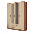 Шкаф оснащен четырьмя распашными дверями, что обеспечивает удобный доступ к содержимому. Внутри шкафа расположены девять полок, а также две секции с ящиками для хранения мелких предметов.