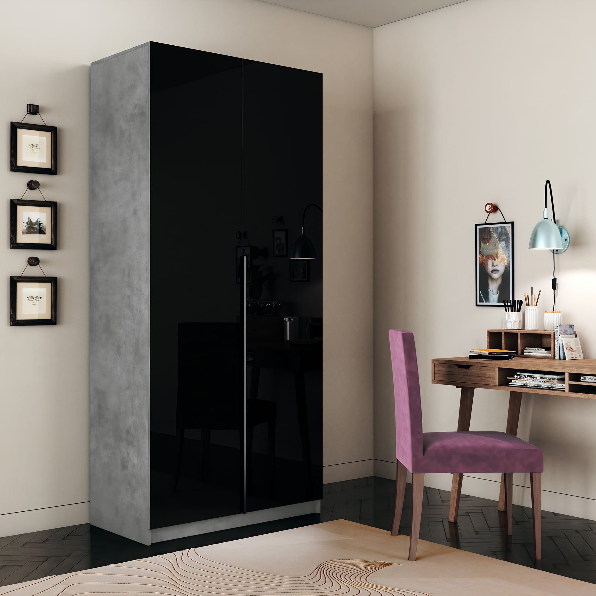 Шкаф Локер 1000 распашной Бетон/Стекло черное