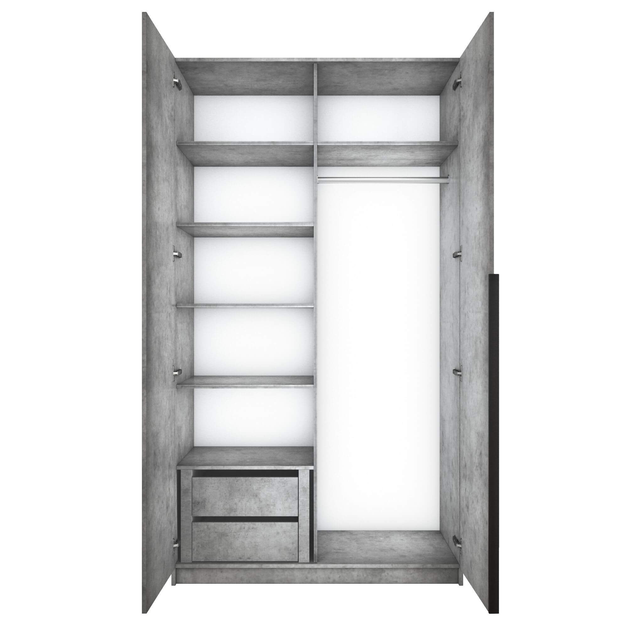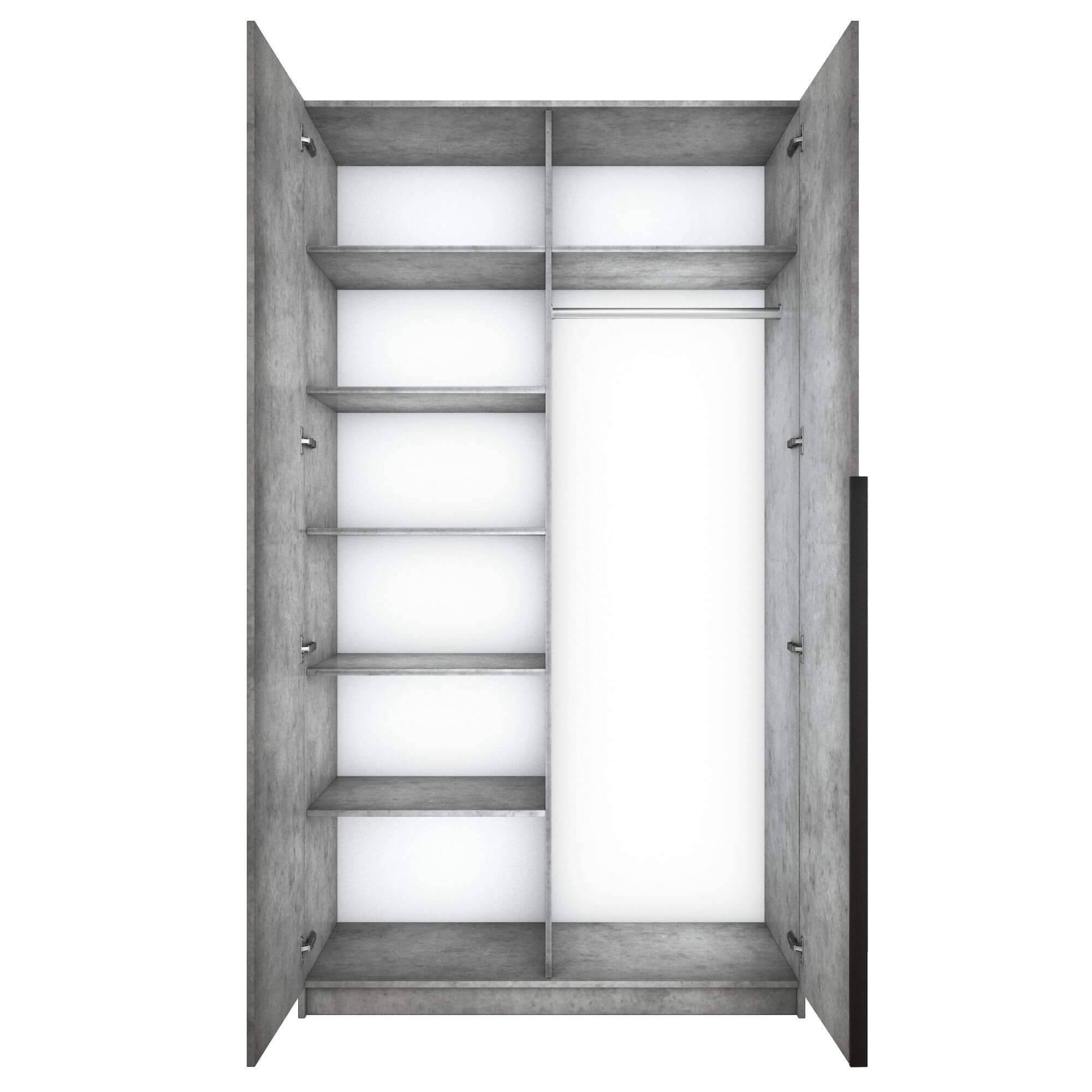 Шкаф оснащен долговечной, ударостойкой кромкой ПВХ, которая защищает его торцы от сколов и повреждений. Мебельные петли Titus B-Type обеспечивают открывание и закрывание двери под углом 110 градусов, а также предотвращают ее перекос. Шкаф оснащен удобной минималистичной ручкой, изготовленной из алюминия.