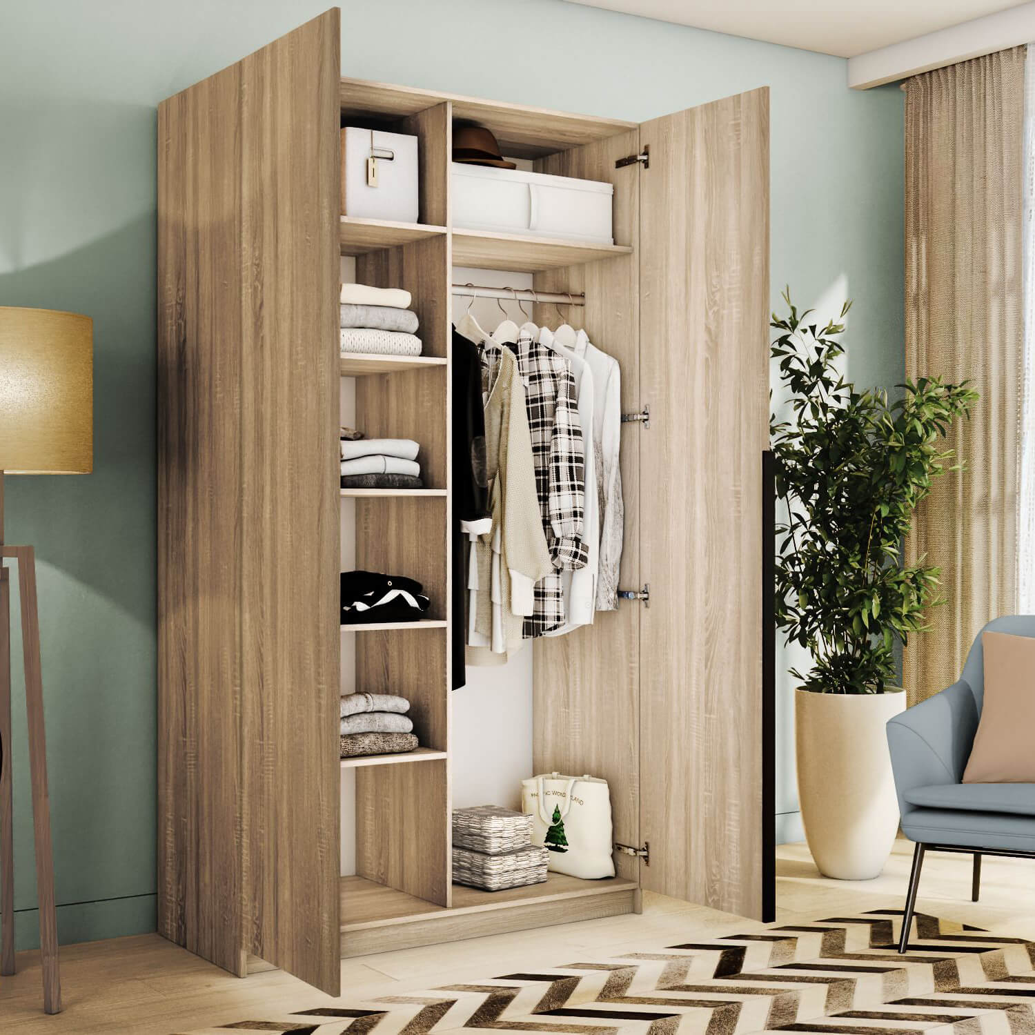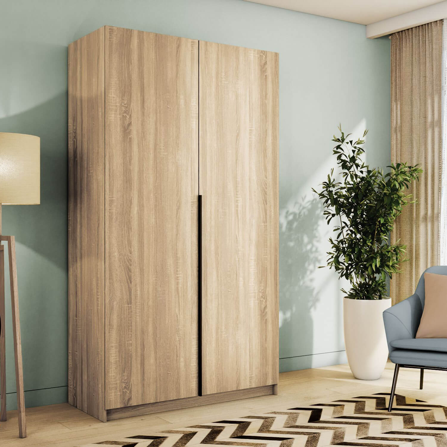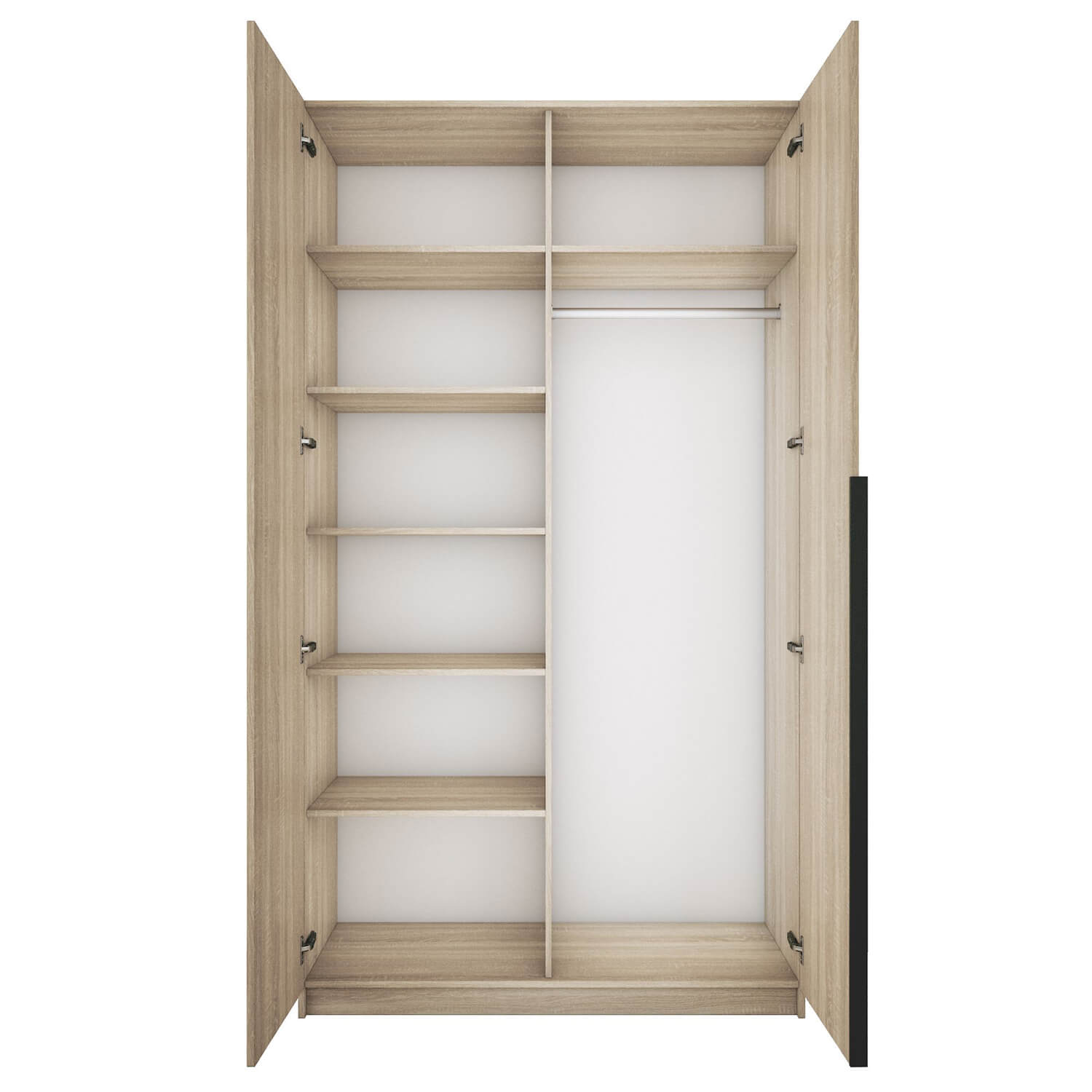 Шкаф оснащен долговечной, ударостойкой кромкой ПВХ, которая защищает его торцы от сколов и повреждений. Мебельные петли Titus B-Type обеспечивают открывание и закрывание двери под углом 110 градусов, а также предотвращают ее перекос. Шкаф оснащен удобной минималистичной ручкой, изготовленной из алюминия.