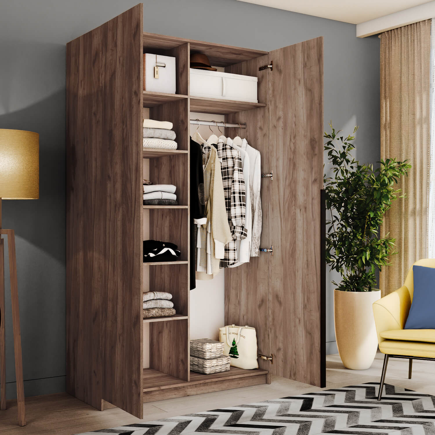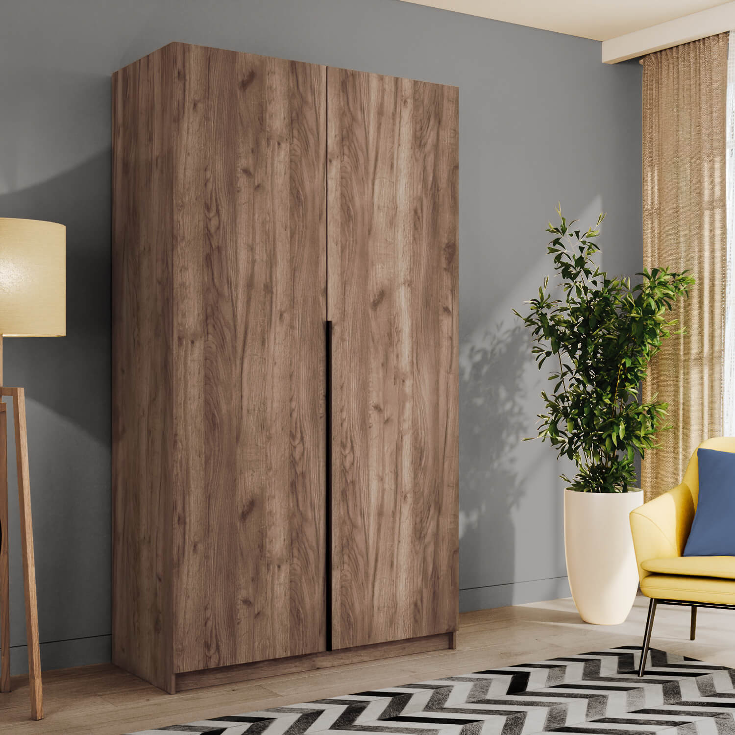 Шкаф оснащен долговечной, ударостойкой кромкой ПВХ, которая защищает его торцы от сколов и повреждений. Мебельные петли Titus B-Type обеспечивают открывание и закрывание двери под углом 110 градусов, а также предотвращают ее перекос. Шкаф оснащен удобной минималистичной ручкой, изготовленной из алюминия.