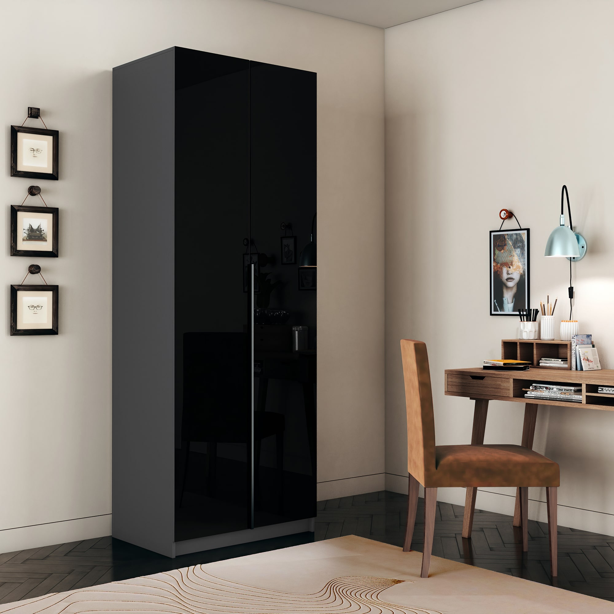 Шкаф оснащен долговечной, ударостойкой кромкой ПВХ, которая защищает его торцы от сколов и повреждений. Мебельные петли Titus B-Type обеспечивают открывание и закрывание двери под углом 110 градусов, а также предотвращают ее перекос. Шкаф оснащен удобной минималистичной ручкой, изготовленной из алюминия.