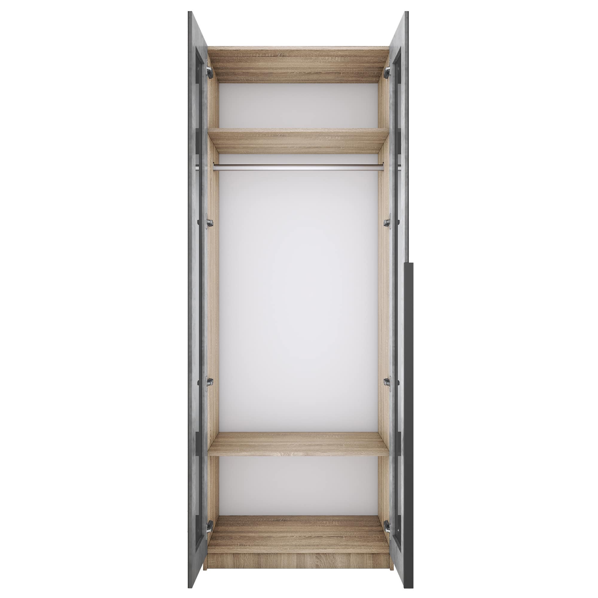 Шкаф оснащен долговечной, ударостойкой кромкой ПВХ, которая защищает его торцы от сколов и повреждений. Мебельные петли Titus B-Type обеспечивают открывание и закрывание двери под углом 110 градусов, а также предотвращают ее перекос. Шкаф оснащен удобной минималистичной ручкой, изготовленной из алюминия.