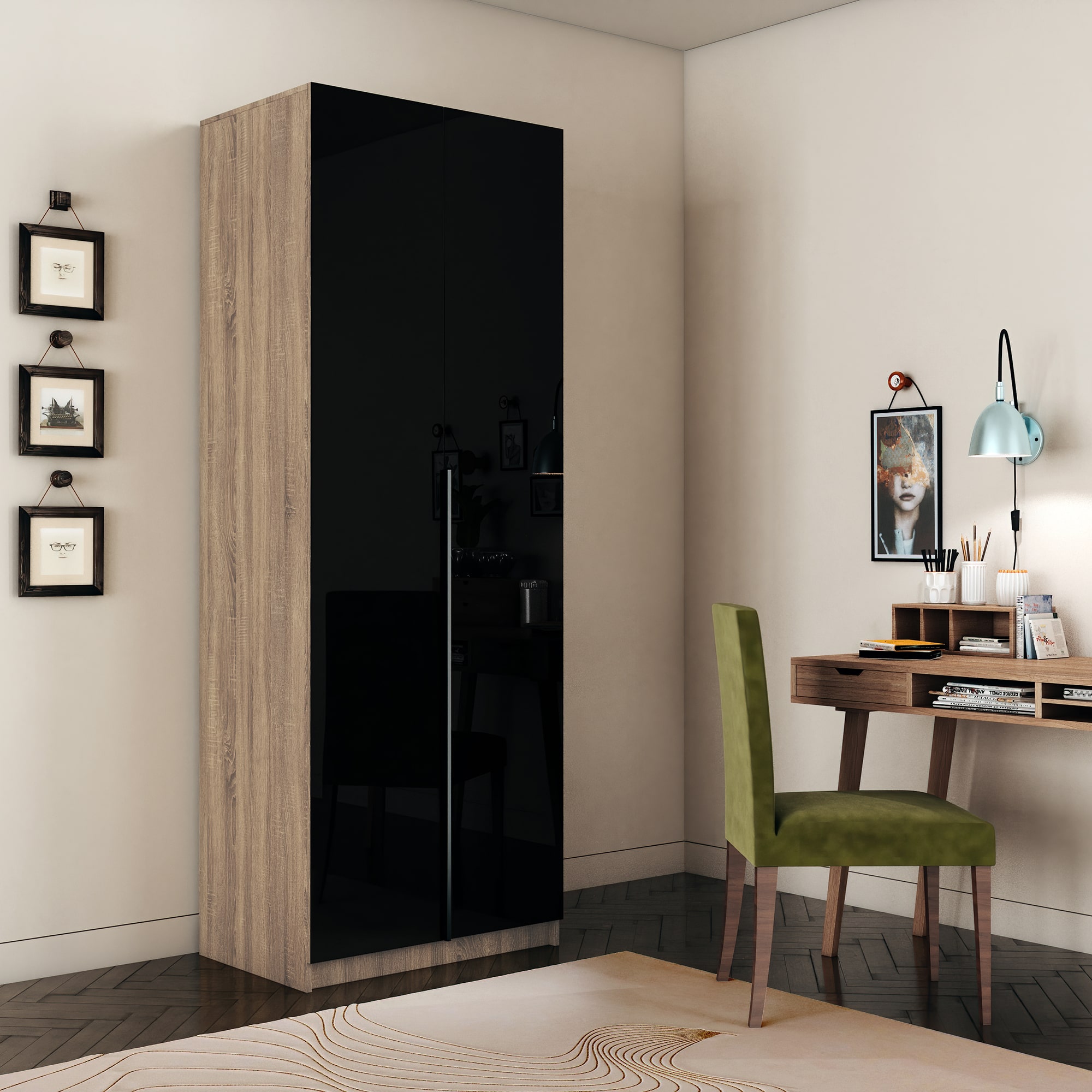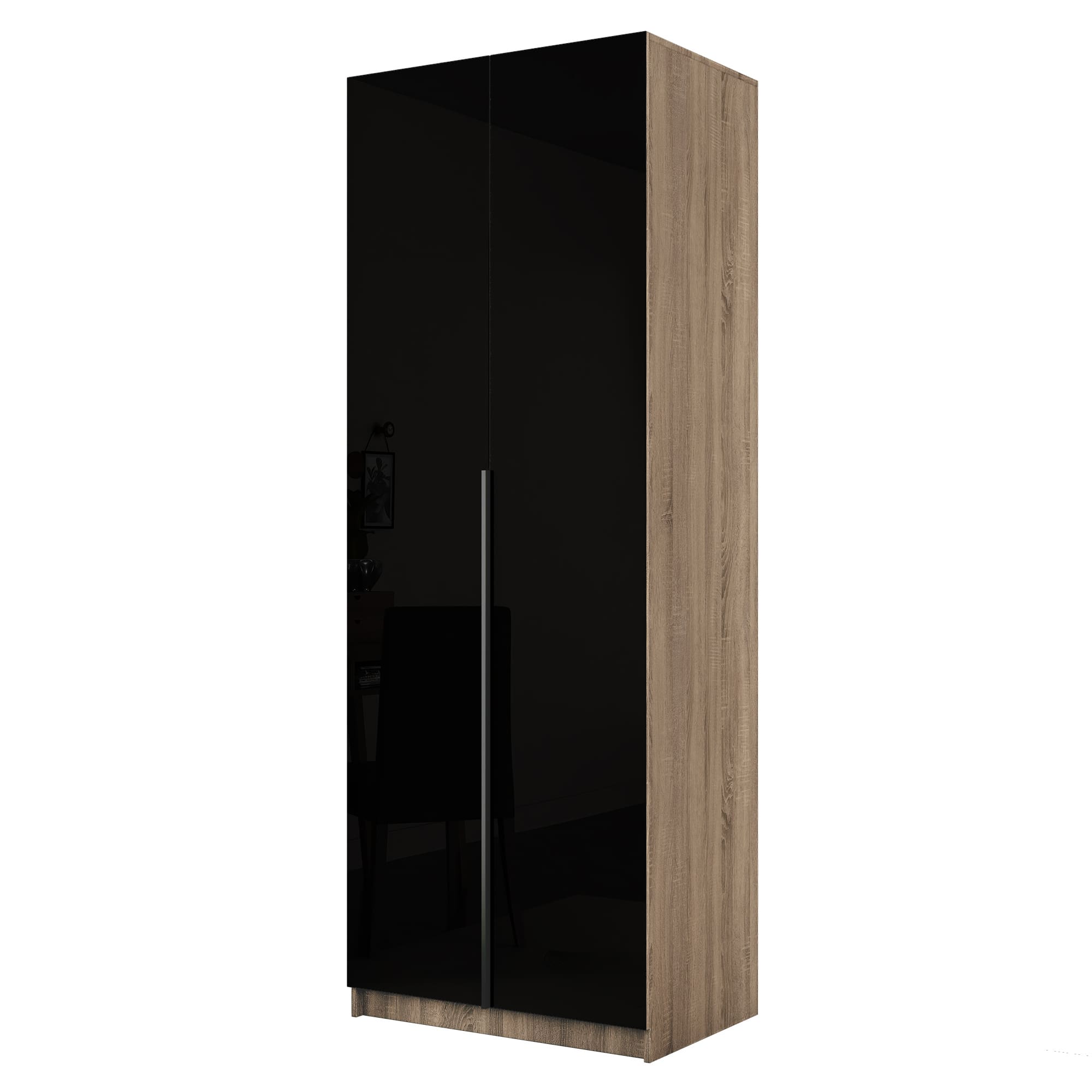 Шкаф Локер 800 распашной Дуб сонома/Стекло черное