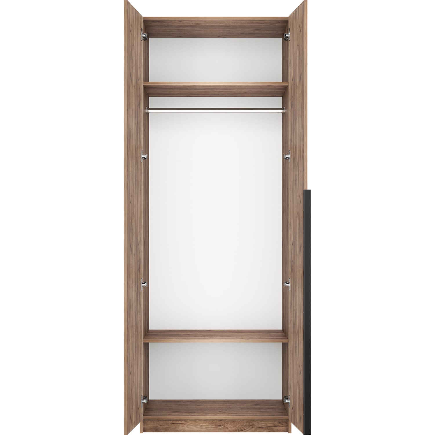 Шкаф оснащен долговечной, ударостойкой кромкой ПВХ, которая защищает его торцы от сколов и повреждений. Мебельные петли Titus B-Type обеспечивают открывание и закрывание двери под углом 110 градусов, а также предотвращают ее перекос. Шкаф оснащен удобной минималистичной ручкой, изготовленной из алюминия.