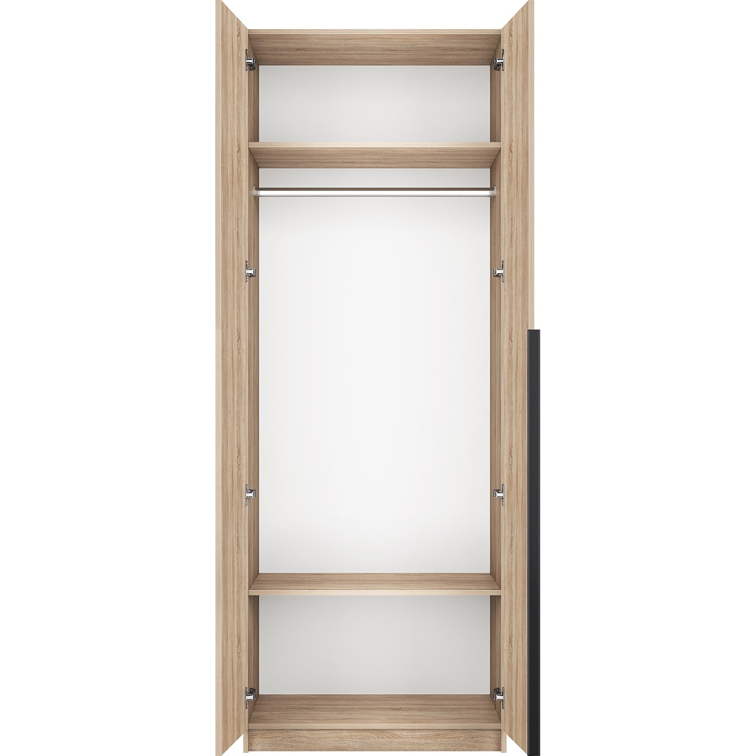 Шкаф оснащен долговечной, ударостойкой кромкой ПВХ, которая защищает его торцы от сколов и повреждений. Мебельные петли Titus B-Type обеспечивают открывание и закрывание двери под углом 110 градусов, а также предотвращают ее перекос. Шкаф оснащен удобной минималистичной ручкой, изготовленной из алюминия.