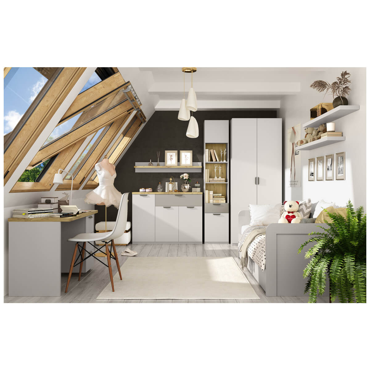Простое, лаконичное оформление, сопряженное с практичностью и удобством в постоянном использовании. Природная естественность подарит ощущение воздушности. Благодаря широкому количеству модулей в коллекции, возможно подобрать мебель для гостиной, прихожей, спальни и молодёжной.