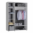 Шкаф оснащен тремя распашными дверями, каждая из которых оснащена удобной пластиковой ручкой черного цвета. Внутри шкафа расположены шесть полок, что позволяет разместить большое количество одежды и аксессуаров.
