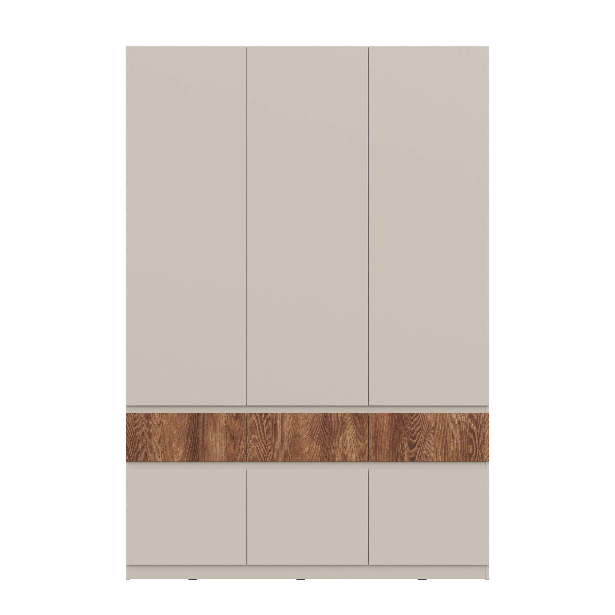 Элегантный дизайн: использование вставки на фасаде в цвете текстурного темного дерева каштан придает мебели уникальность, добавляя контраст.