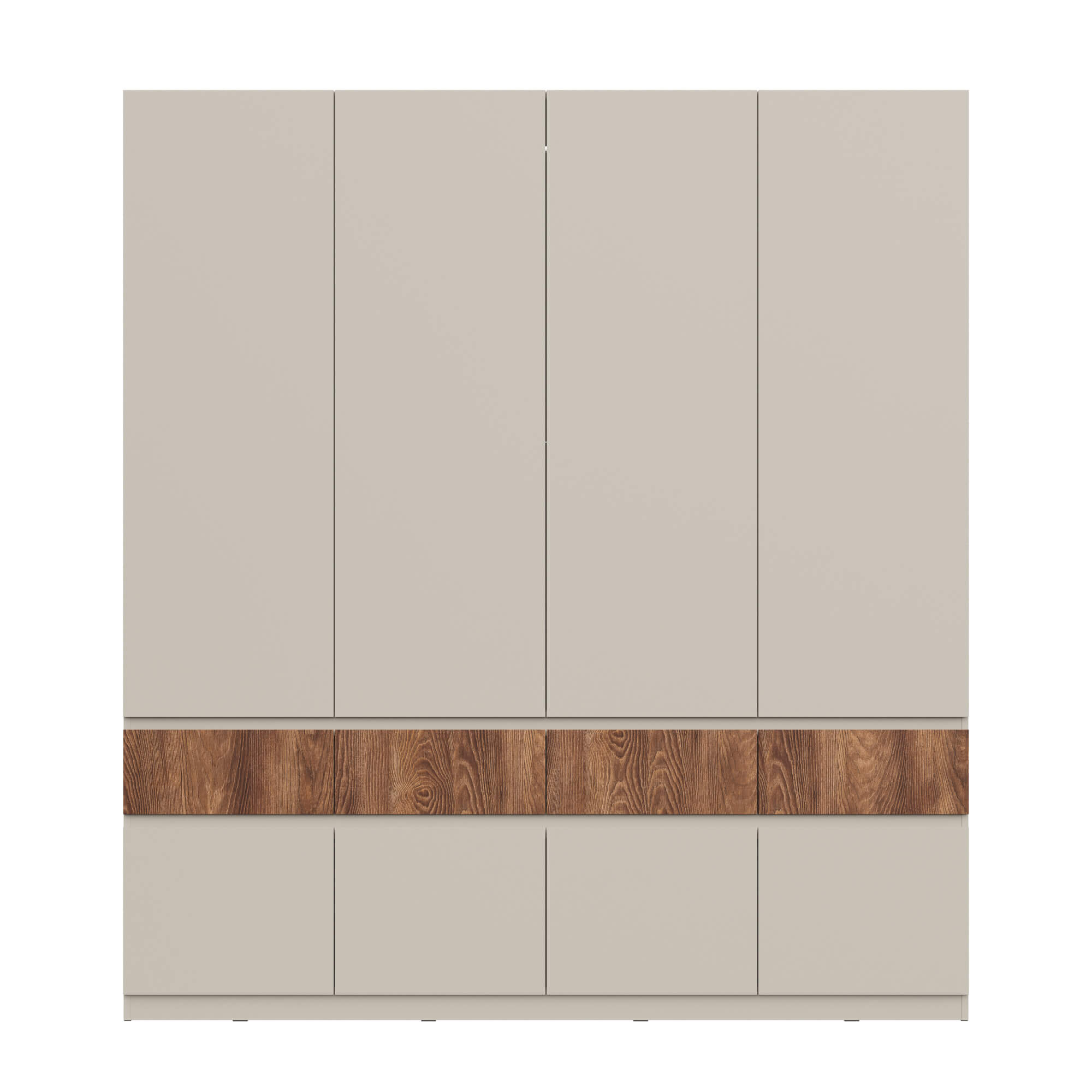 Элегантный дизайн: использование вставки на фасаде в цвете текстурного темного дерева каштан придает мебели уникальность, добавляя контраст.
