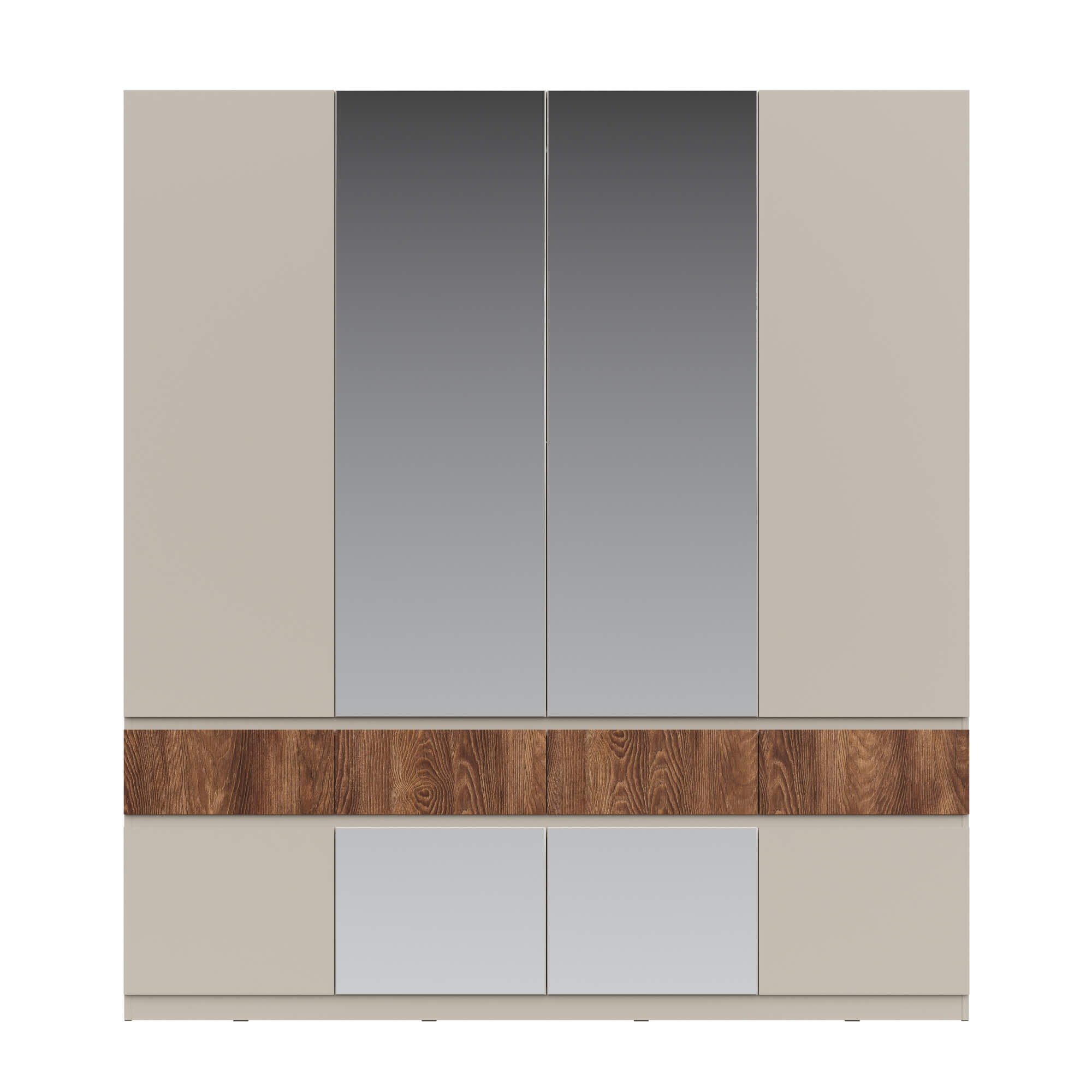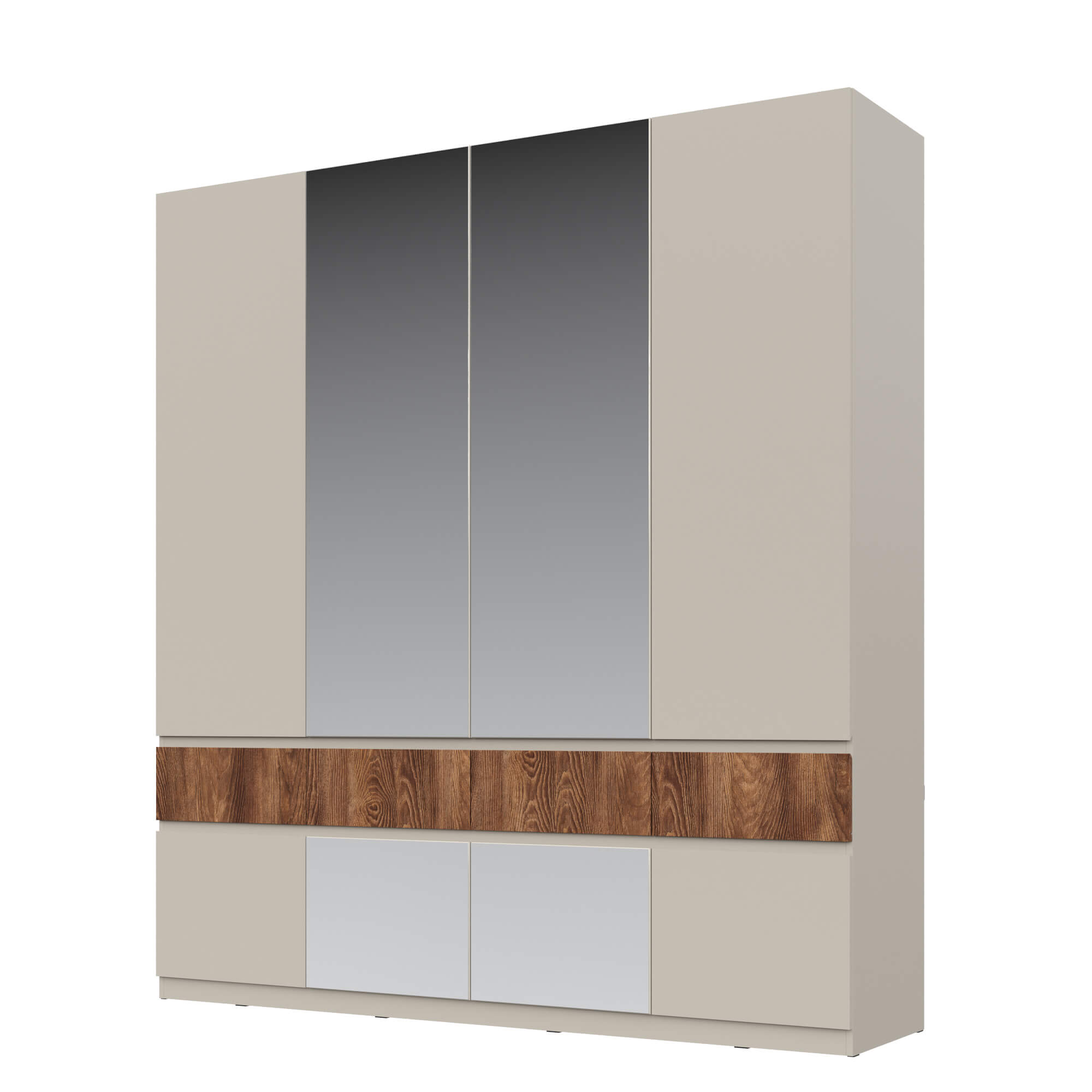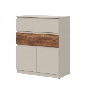 Элегантный дизайн: использование вставки на фасаде в цвете текстурного темного дерева каштан придает мебели уникальность, добавляя контраст.