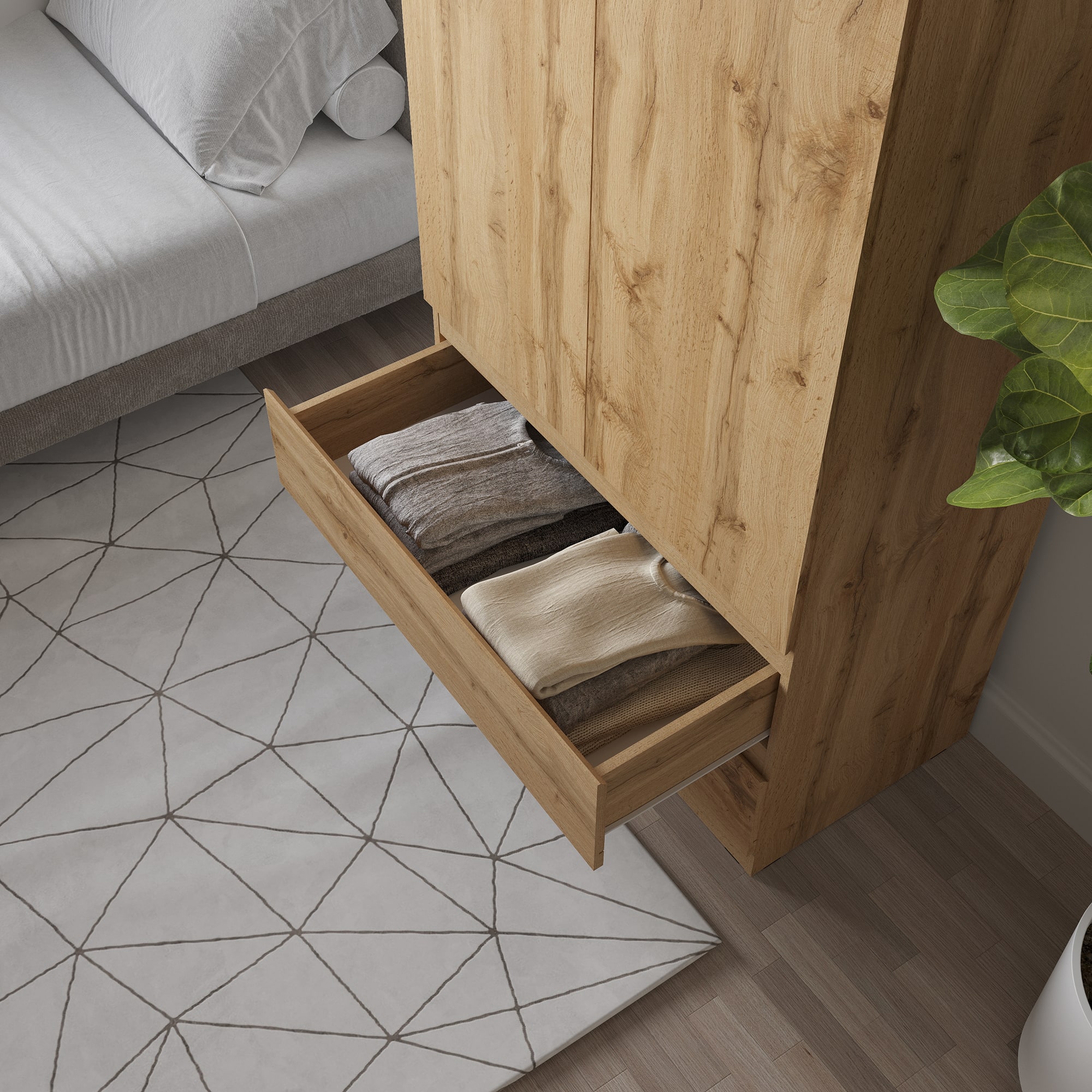 Дизайн шкафа STERN выполнен в стиле без лишних деталей, что делает его уместным в любой комнате. Удобные скошенные ручки на фасадах и модные цвета декоративной отделки придают шкафу современный и стильный вид.