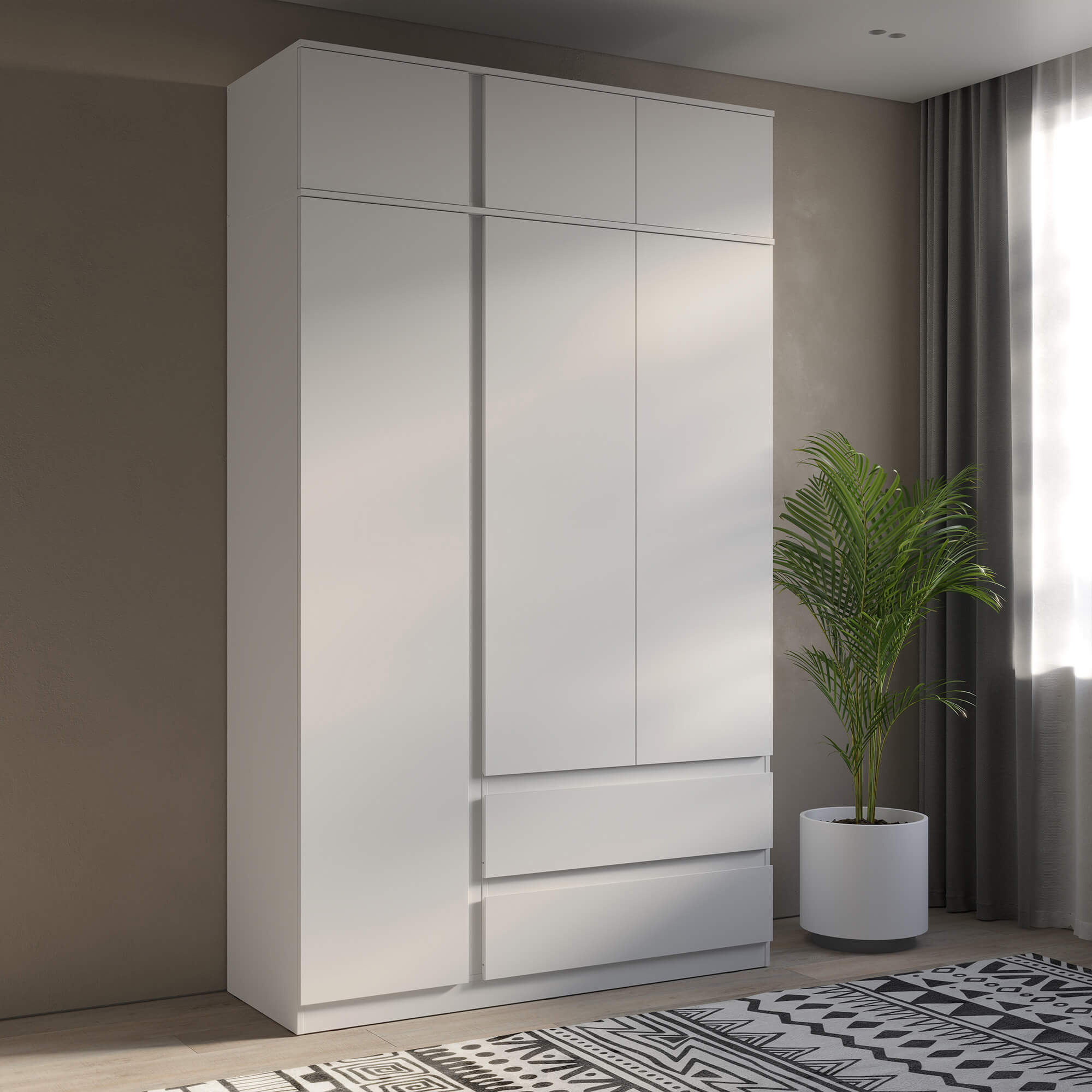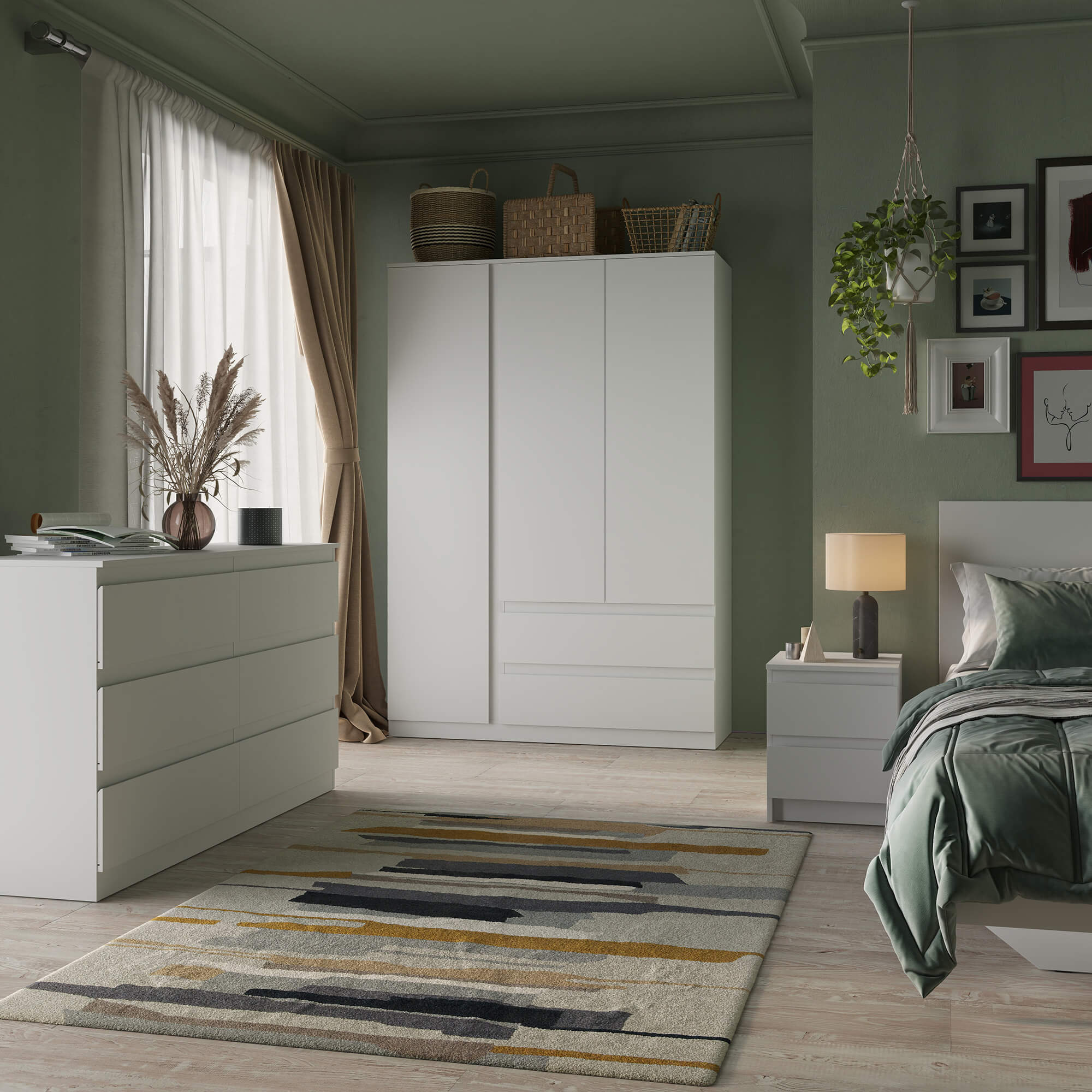 Серия мебели STERN отличается современным дизайном без лишних деталей, который будет уместен в любой комнате. Удобные скошенные ручки на фасадах и модные цвета декоративной отделки придают элегантный вид.