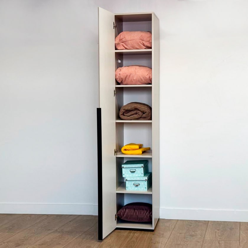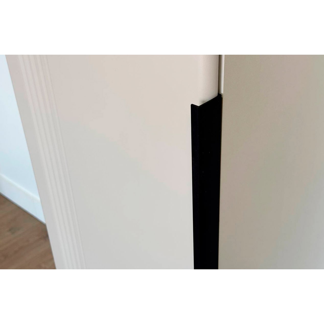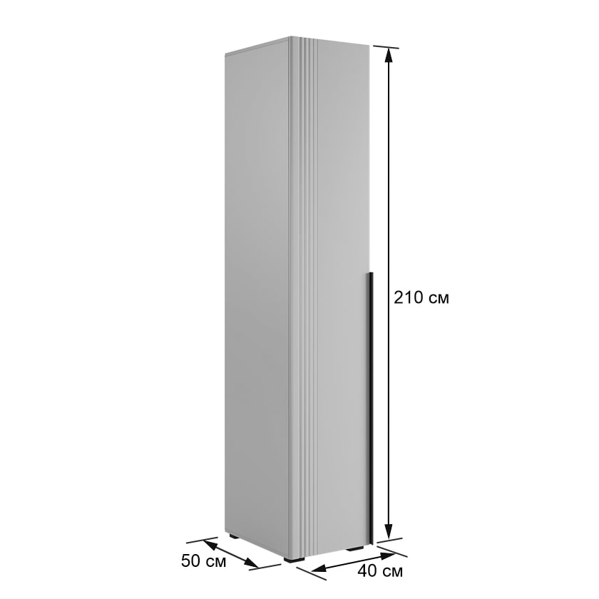Особое внимание заслуживает фрезеровка фасада, которая придаёт шкафу изысканный вид. Длинная пластиковая ручка гармонично дополняет общий стиль.