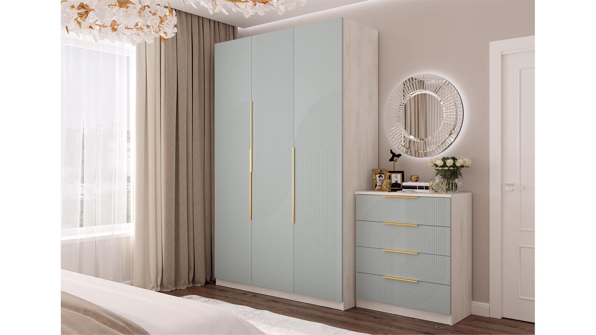 -Торцевые ручки в цвете “золото” добавляют изысканности и завершенности дизайну