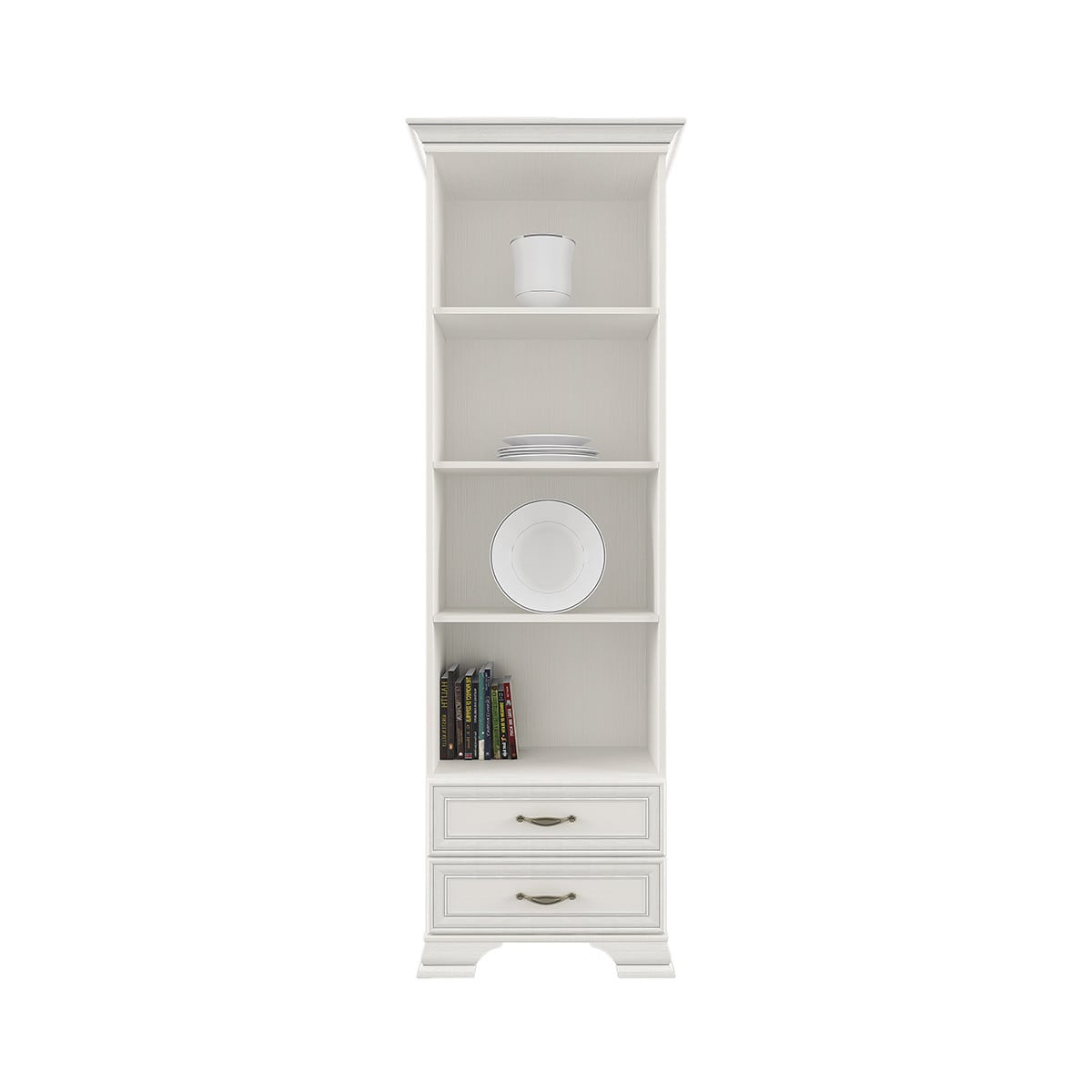 Шкаф открытый Тиффани 2S поможет оформить интерьер гостиной и столовой в классическом стиле. Шкаф открытый 2S – прямой. Конструкция элемента представляет собой одно открытое отделение с полками из ЛДСП для хранения предметов декора, книг, посуды, памятных вещей и т.д., дополнительную комодную секцию – два выдвижных ящика (2S) для организации хранения мелких предметов быта, полотенец, салфеток и других вещей, которые должны быть скрыты.
