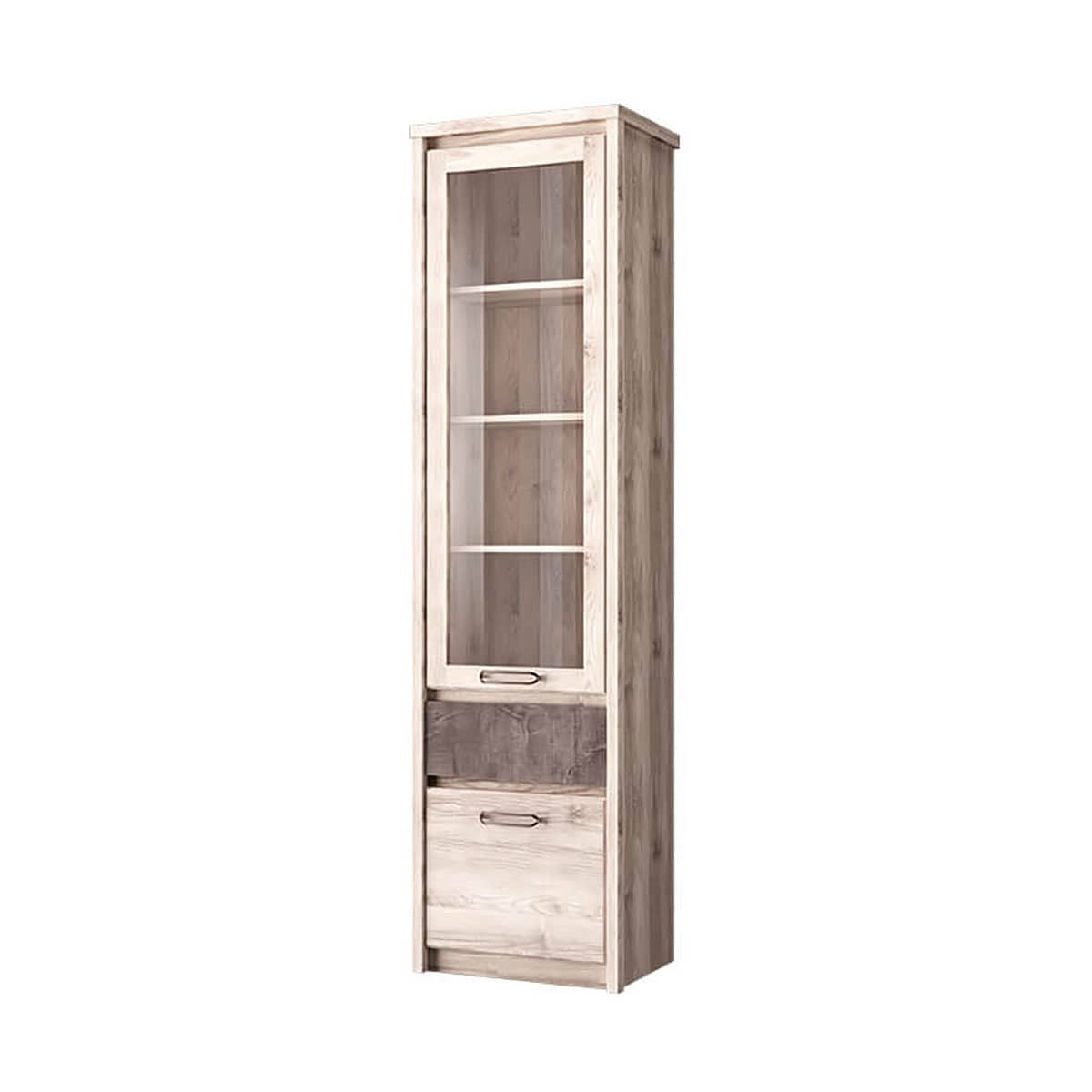 Шкаф с витриной 1V1D1S – изящный акцент в современном интерьере гостиной. Элемент можно установить, как отдельный предмет мебели, так и в композиции с другими модулями коллекции JAZZ. Шкаф с витриной 1V1D1S имеет прямую конструкцию. Конструкция элемента представляет собой одно отделение с полками из ЛДСП за витриной (1V), одну нишу за глухой дверью (1D), один выдвижной ящик (1S). Дверь и витрина распашные, крепятся на петли к боковому корпусу.