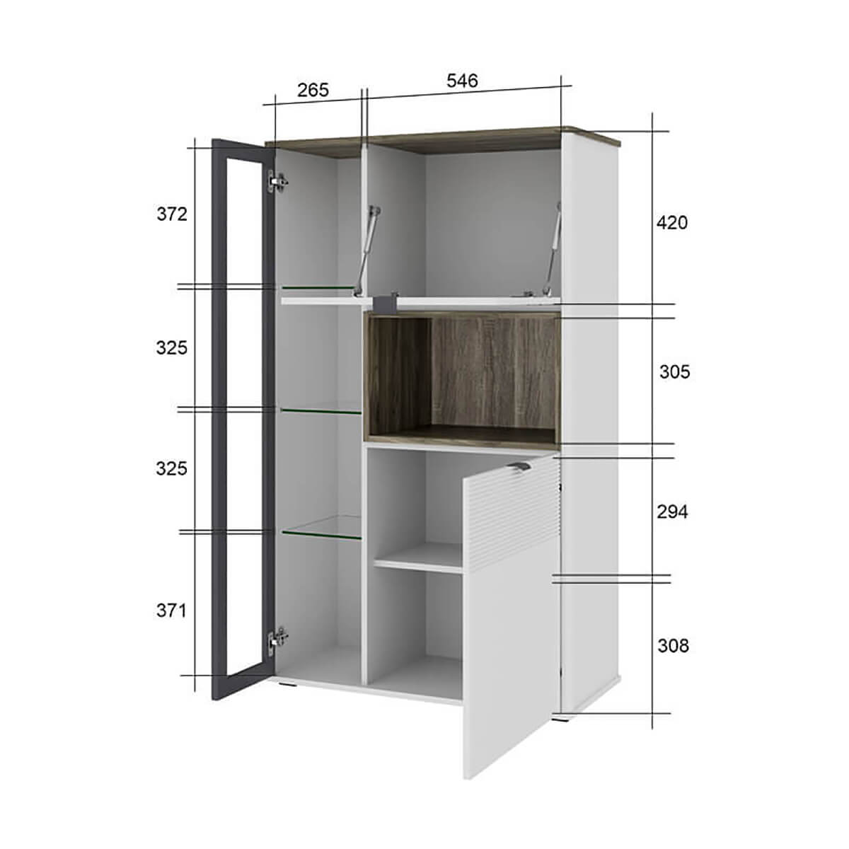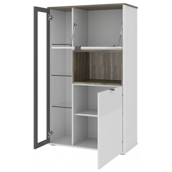 Шкаф с витриной SIMPLE 1V2D3N Белый/Монте/Джелато