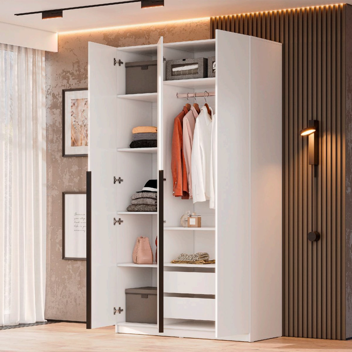 Шкаф ШК5 идеально подойдет для спальни, прихожей, детской, гостиной и даже гардеробной.