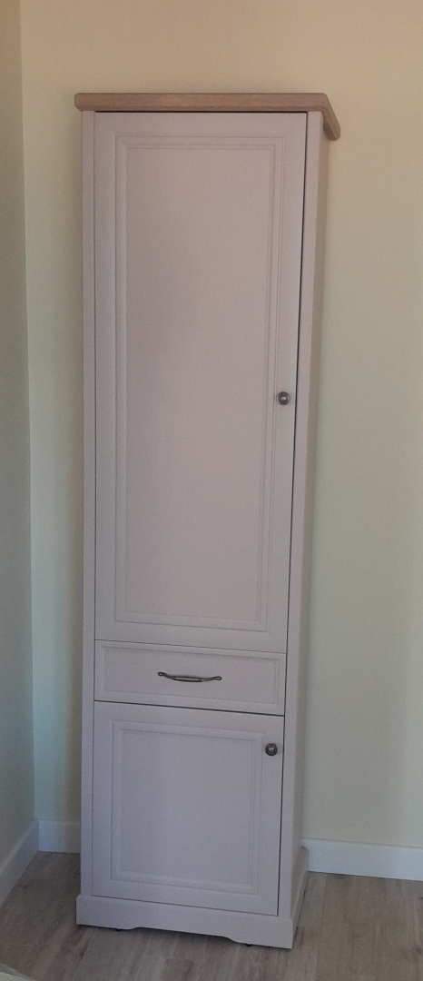 Фасад - рамочно-филенчатая конструкция, ЛДСП, 16 мм (основа); рамка - МДФ, 9 мм; филенка - ЛДСП, 8 мм, цвет - персидский жемчуг. Кромка - меламиновая бумага, толщина 0,3 мм; цвет - персидский жемчуг.