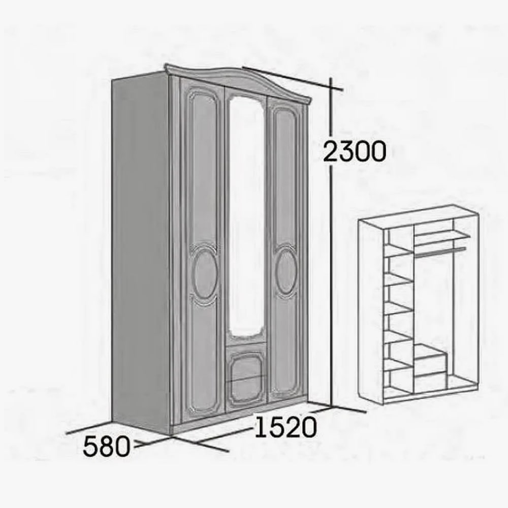 Трехдверный шкаф "Верона" - это воплощение классики и изящества.