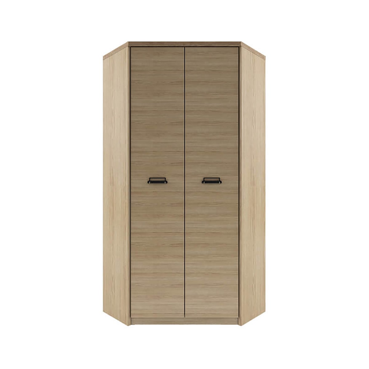 Шкаф угловой DIESEL 2D – предмет мебели, который организует удобное хранение вещей, стильно сконструирует интерьер комнаты. Шкаф угловой DIESEL 2D имеет угловую пятиугольную конструкцию. Конструкция элемента представляет собой гардеробное отделение с двумя штангами, отделение с полками из ЛДСП за двумя глухими дверями (2D). Двери распашные, крепятся на петли к боковому корпусу изделия.