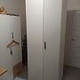 Шкаф оснащен одной распашной дверью, которая открывается на себя. Внутри шкафа расположены четыре полки и штанга, что позволяет разместить большое количество вещей.