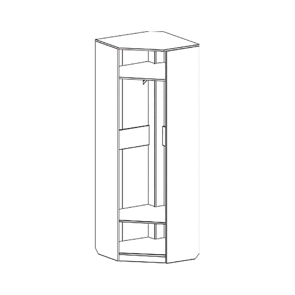 Угловой шкаф "Элана" имеет стационарные полки и платяное отделение с выдвижной стальной штангой.