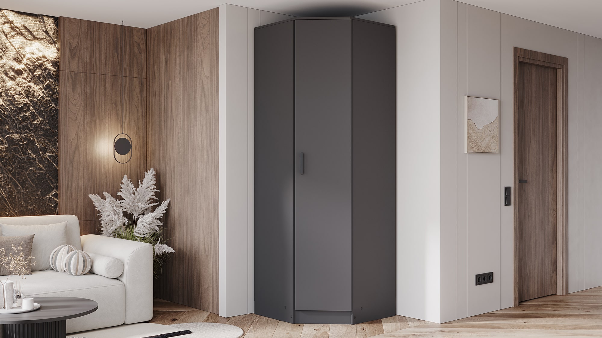 Угловая конструкция шкафа позволяет максимально эффективно использовать пространство в комнате, обеспечивая компактное и функциональное обустройство помещения любого размера.