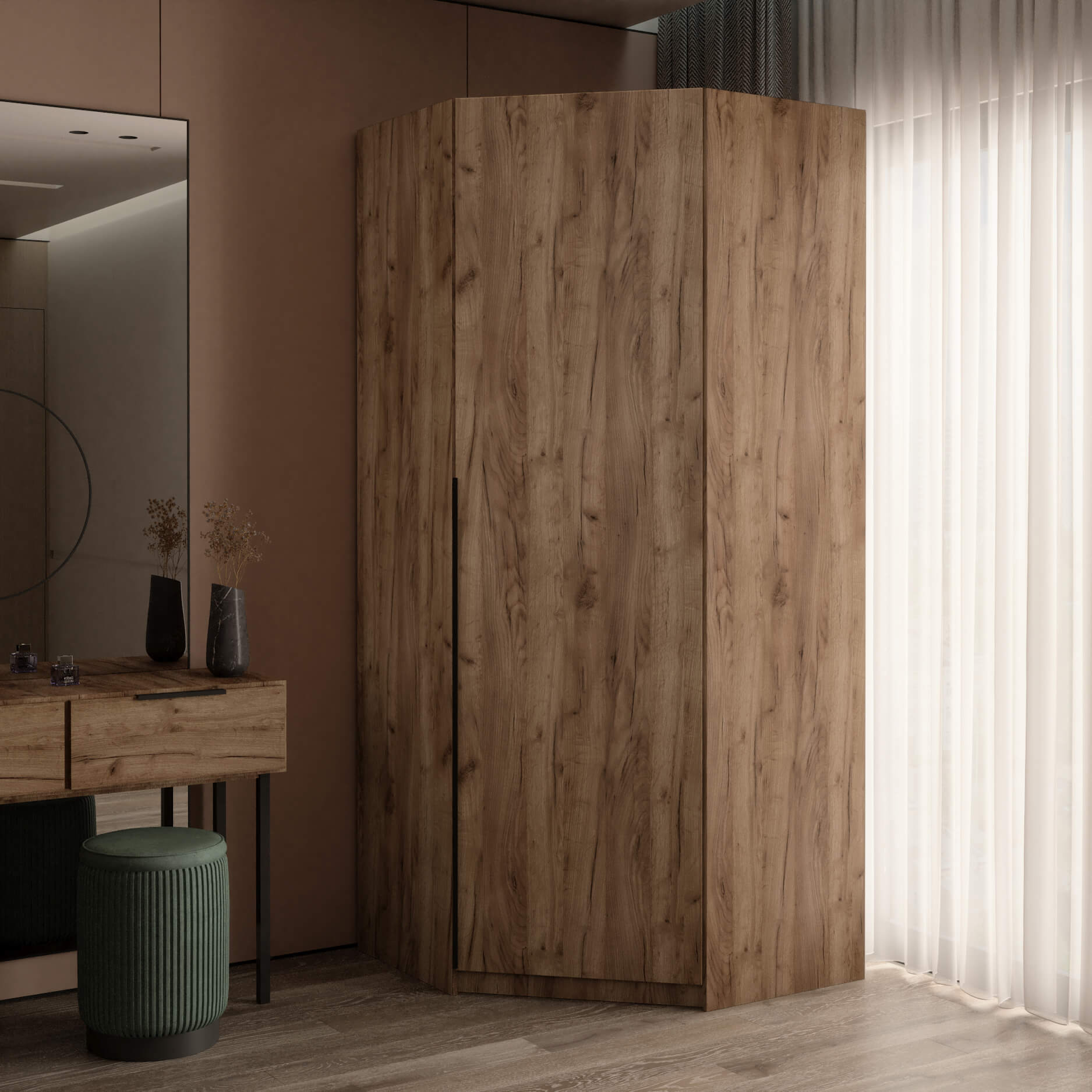 Шкаф оснащен долговечной, ударостойкой кромкой ПВХ, которая защищает его торцы от сколов и повреждений. Шкаф оснащен удобной минималистичной ручкой, изготовленной из алюминия.